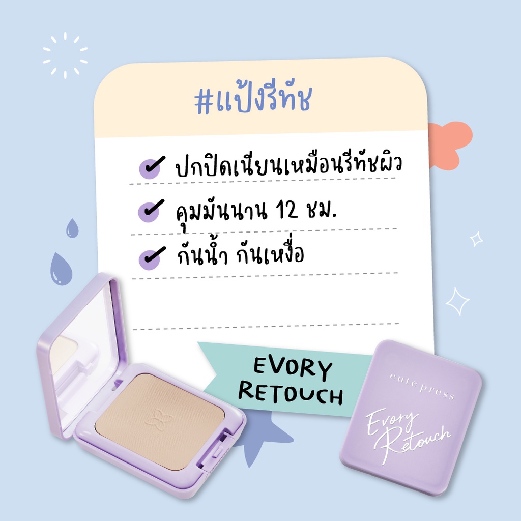 💟ของแท้ | ส่งเร็ว💟แป้ง แป้งรีทัช Cute Press Evory Retouch Oil Control Foundation Powder SPF30