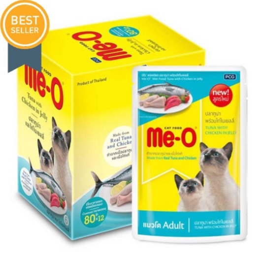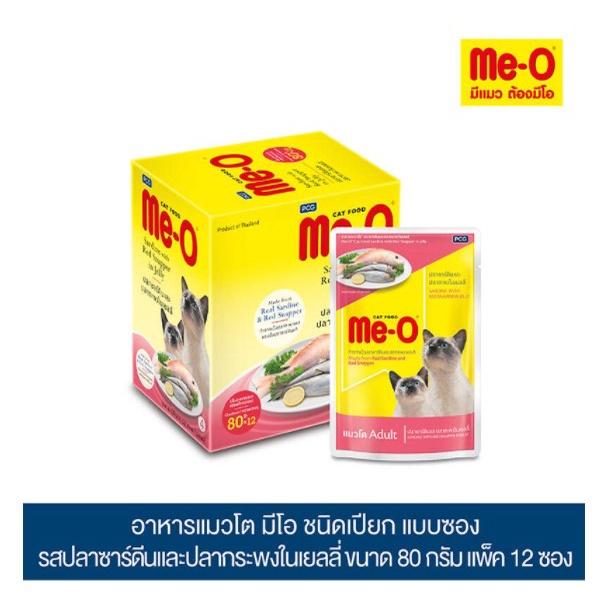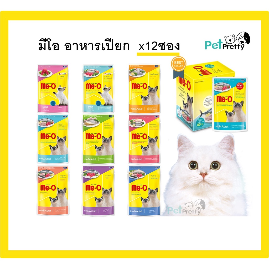 [12ซอง] มีโอ เพาซ์ อาหารแมว 80กรัม x 12 ซอง (Meo Me-O cat food pouch อาหารแมวเปียก อาหารเปียกแมว แมวแก่ 7+) โหล
