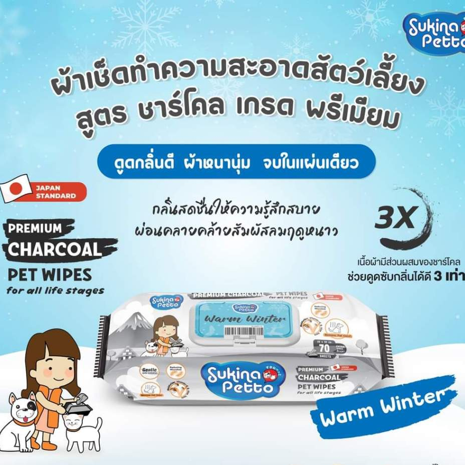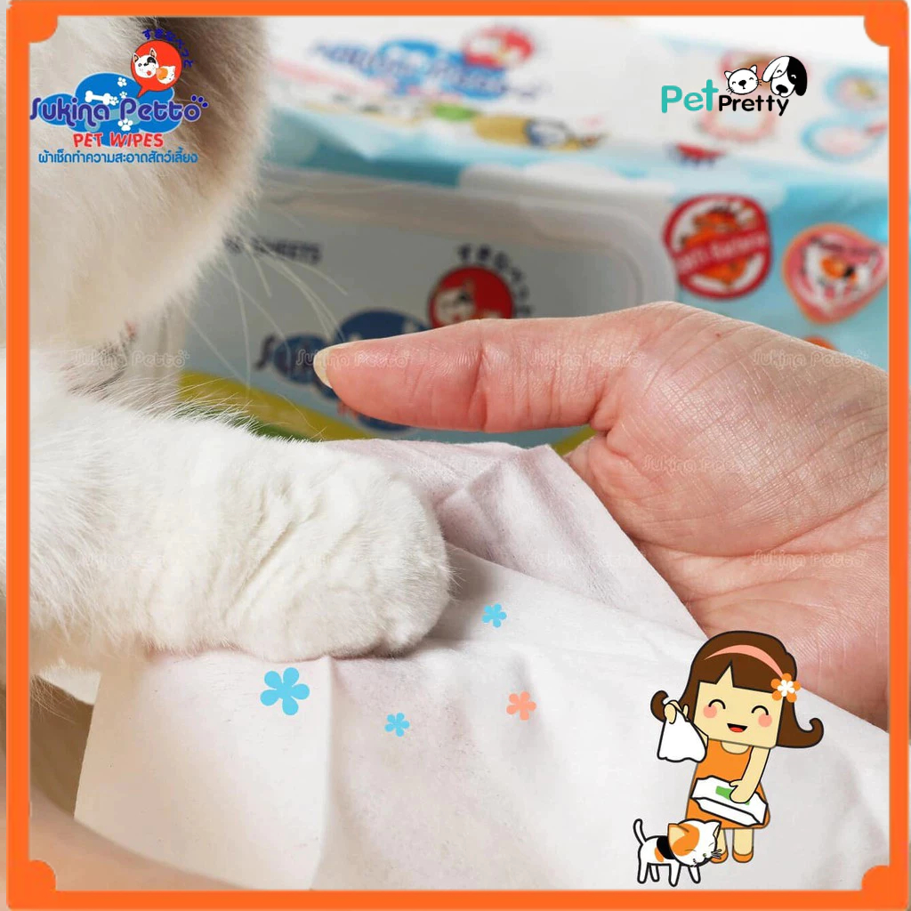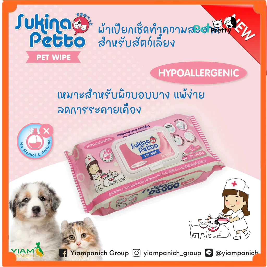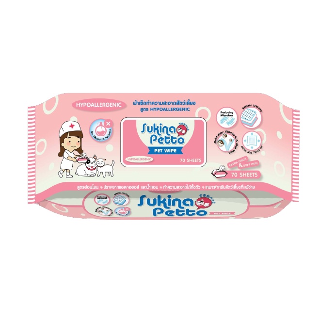 Sukina Pet Wipes ผ้าเปียกสุนัข ผ้าเปียกแมว 70แผ่น 4 สูตร( สุกินะ ทิชชู่เปียก เช็ดตัว สัตว์เลี้ยง แผ่นเปียกสัตว์เลี้ยง )