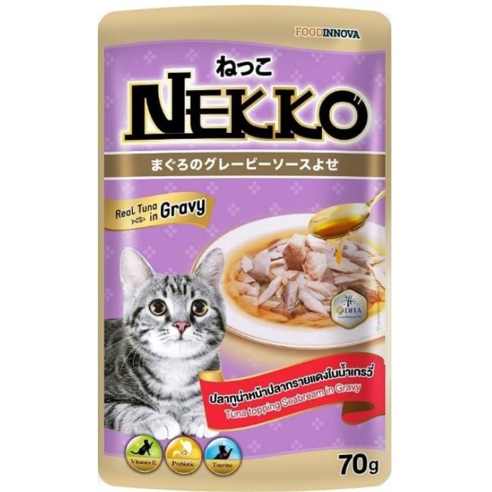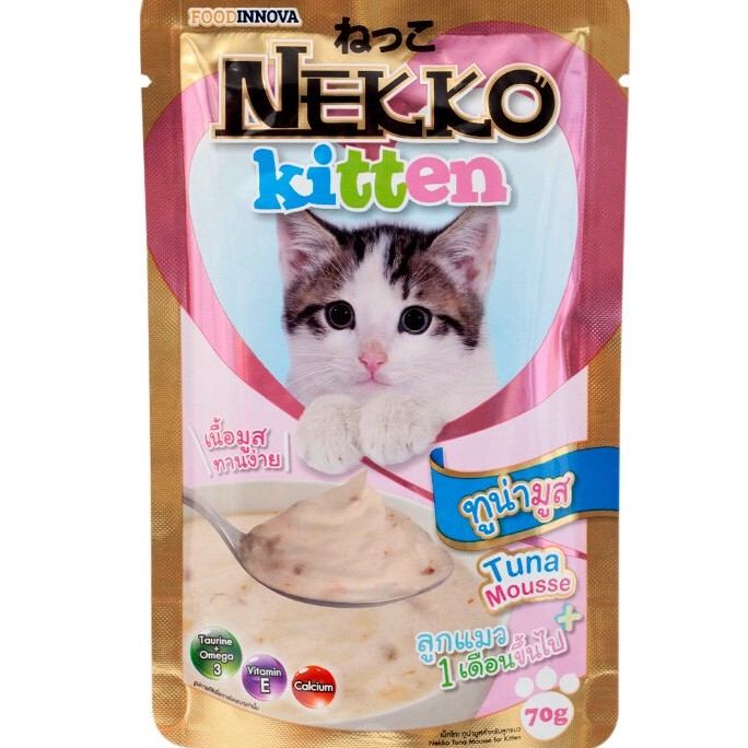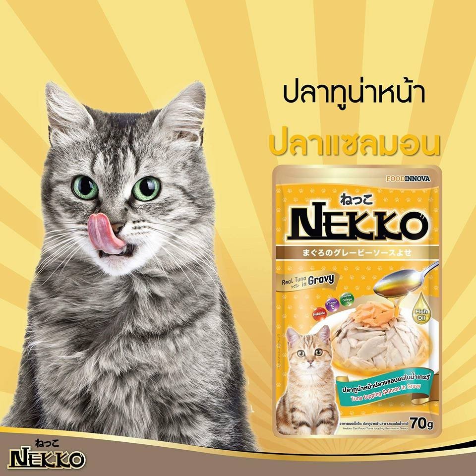 [1ซอง] Nekko อาหารแมว เน็กโกะ อาหารเปียก 70กรัม (เยลลี่, เกรวี่ และ เนื้อมูส) ลูกแมว -แมวโต
