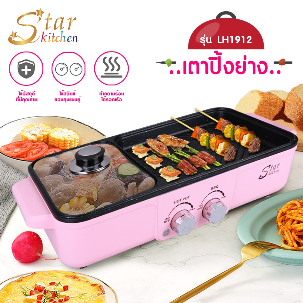 โค้ด UKFA9D ลด 15% สูงสุด 30.- Starkitchen เตาย่าง เตาไฟฟ้า เตาปิ้งย่างบาร์บีคิว กระทะไฟฟ้า หม้อสุกี้ไฟฟ้า ปิ้งย่าง รุ่น LH1912