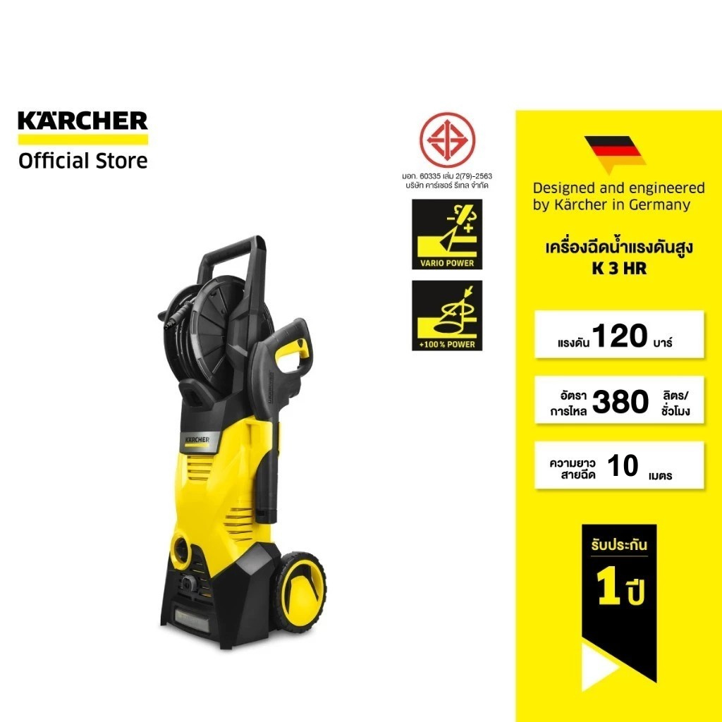 KARCHER เครื่องฉีดน้ำแรงดันสูง K 3 HR ขนาดกระทัดรัด แรงดัน 120 บาร์ หัวฉีดปรับแรงดันได้ 1.599-261.0 คาร์เชอร์