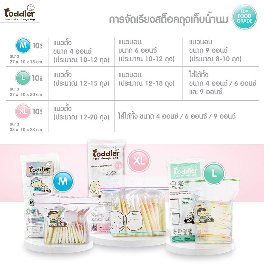 Toddler ถุงซิปเอนกประสงค์ จัดเรียงสต๊อก เก็บอุปกรณ์เครื่องปั๊มนม เก็บอาหาร / ถุงเก็บน้ำนม 7oz ลาย Unicorn