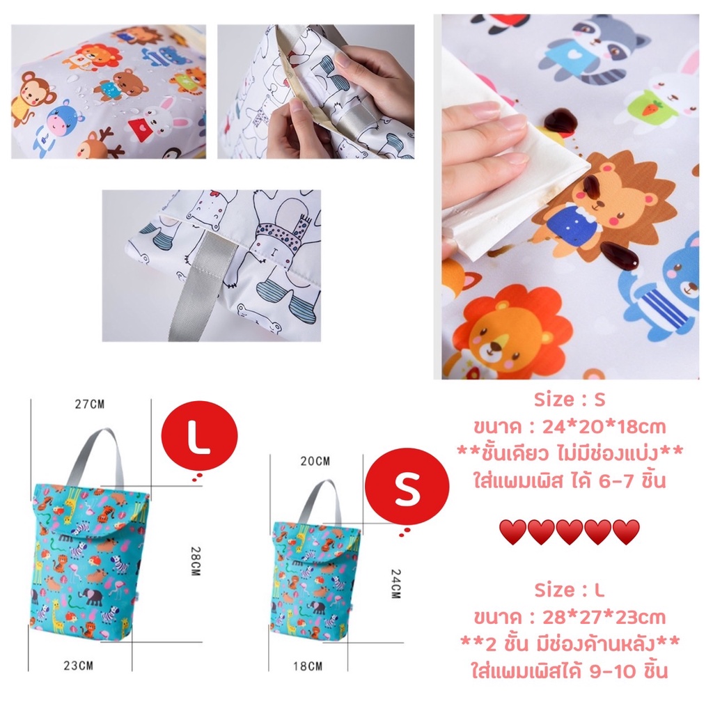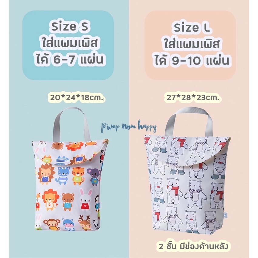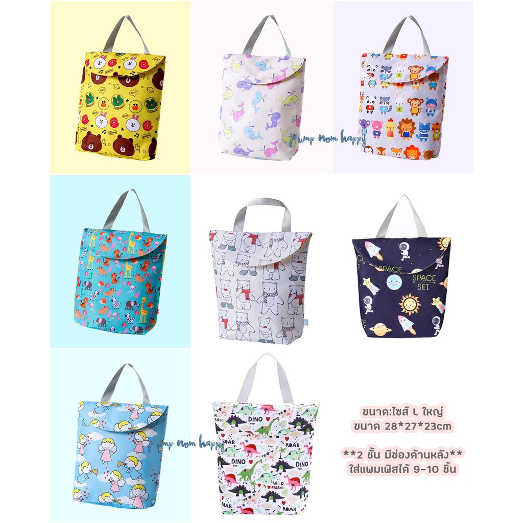 ถุงผ้าใส่แพมเพิส ใส่ของอเนกประสงค์ ใส่ขวดนม / แพมเพิส / ipad หนังสือ ฯลฯ มีหูหิ้ว ผ้า Polyester กันน้ำ กันฝุ่น