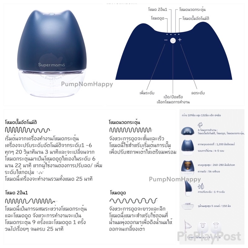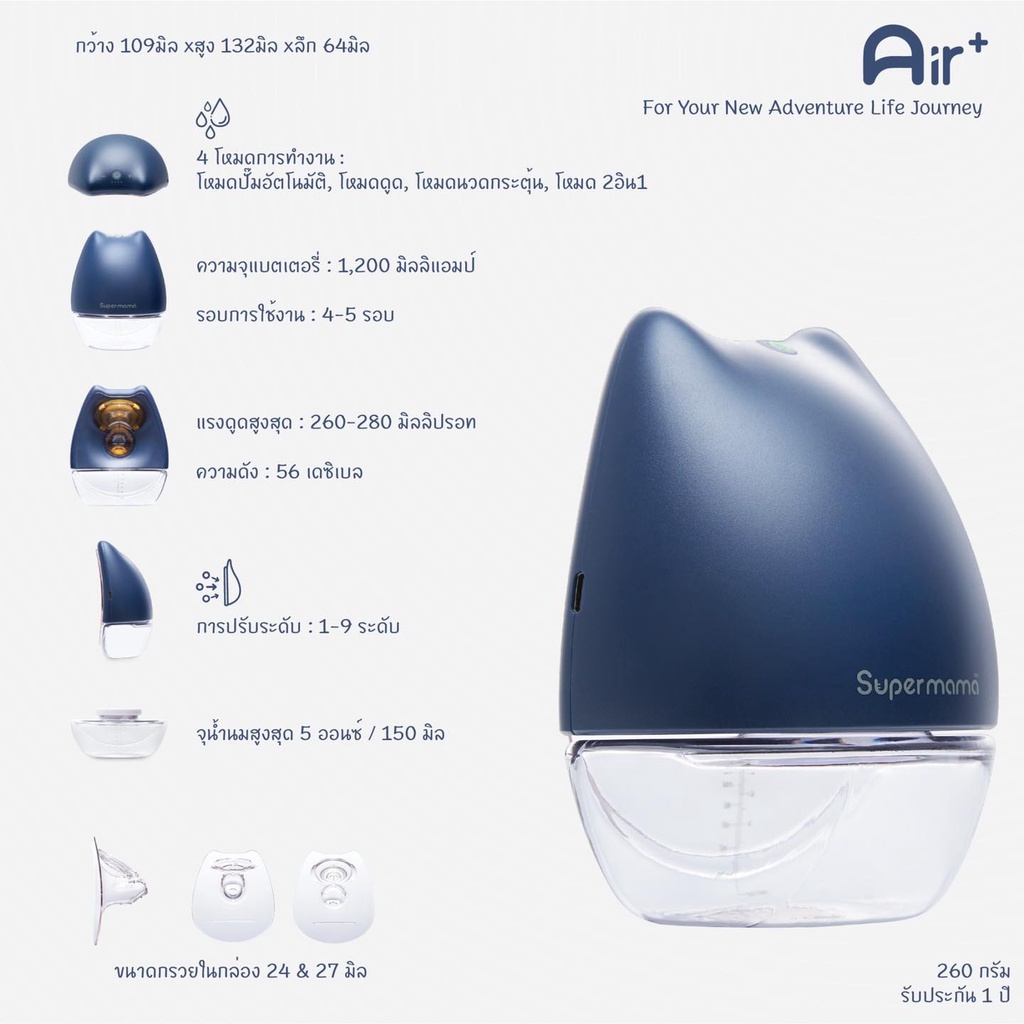 Super Mama ไร้สาย Air Plus ใหม่ 4 โหมด / เครื่องปั๊มนมไร้สาย (Malish / Malima)