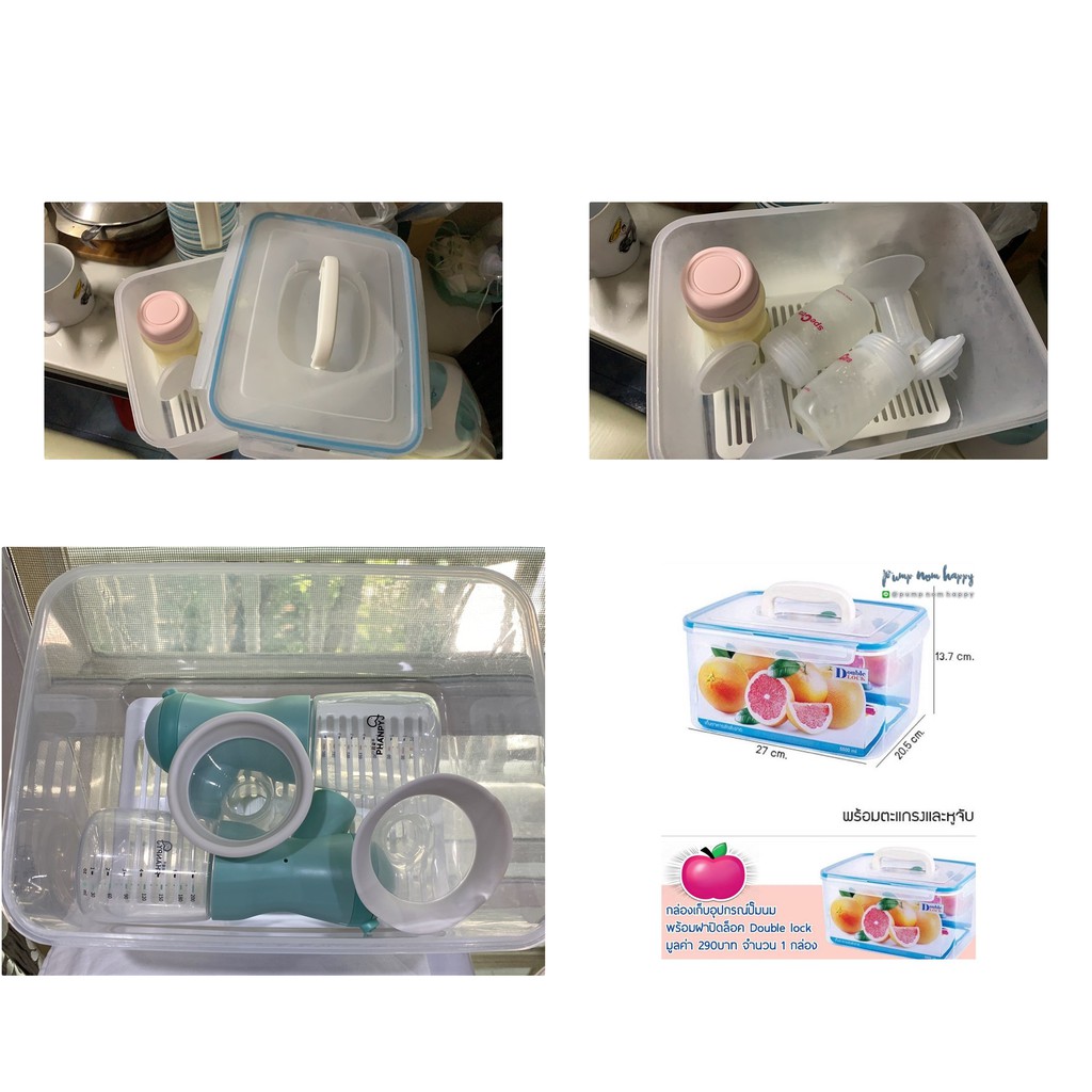 กล่องเก ็บชุดกรวยปั๊มนม พร้อมฝาล็อค กันกลิ่น กันฝุ่นได้ แบบหูหิ้ว double lock / แบบฝาปิด