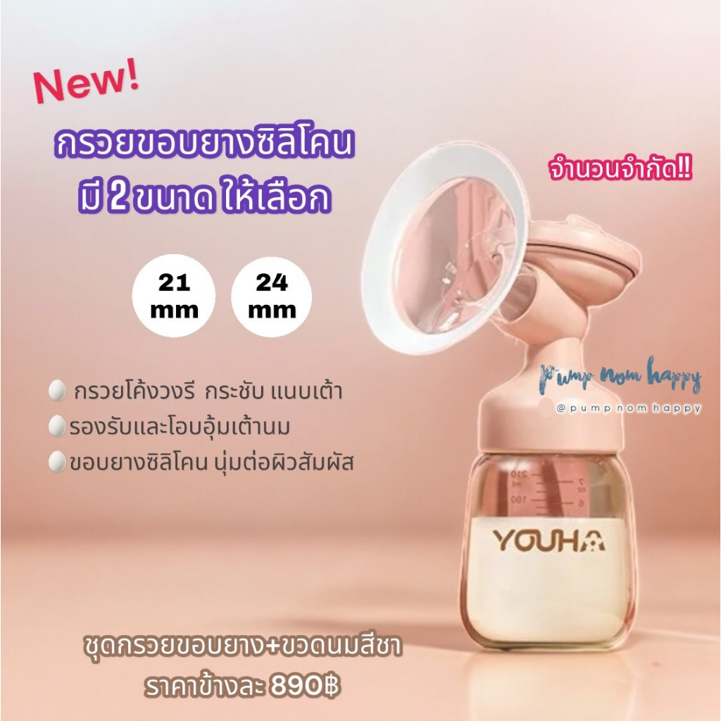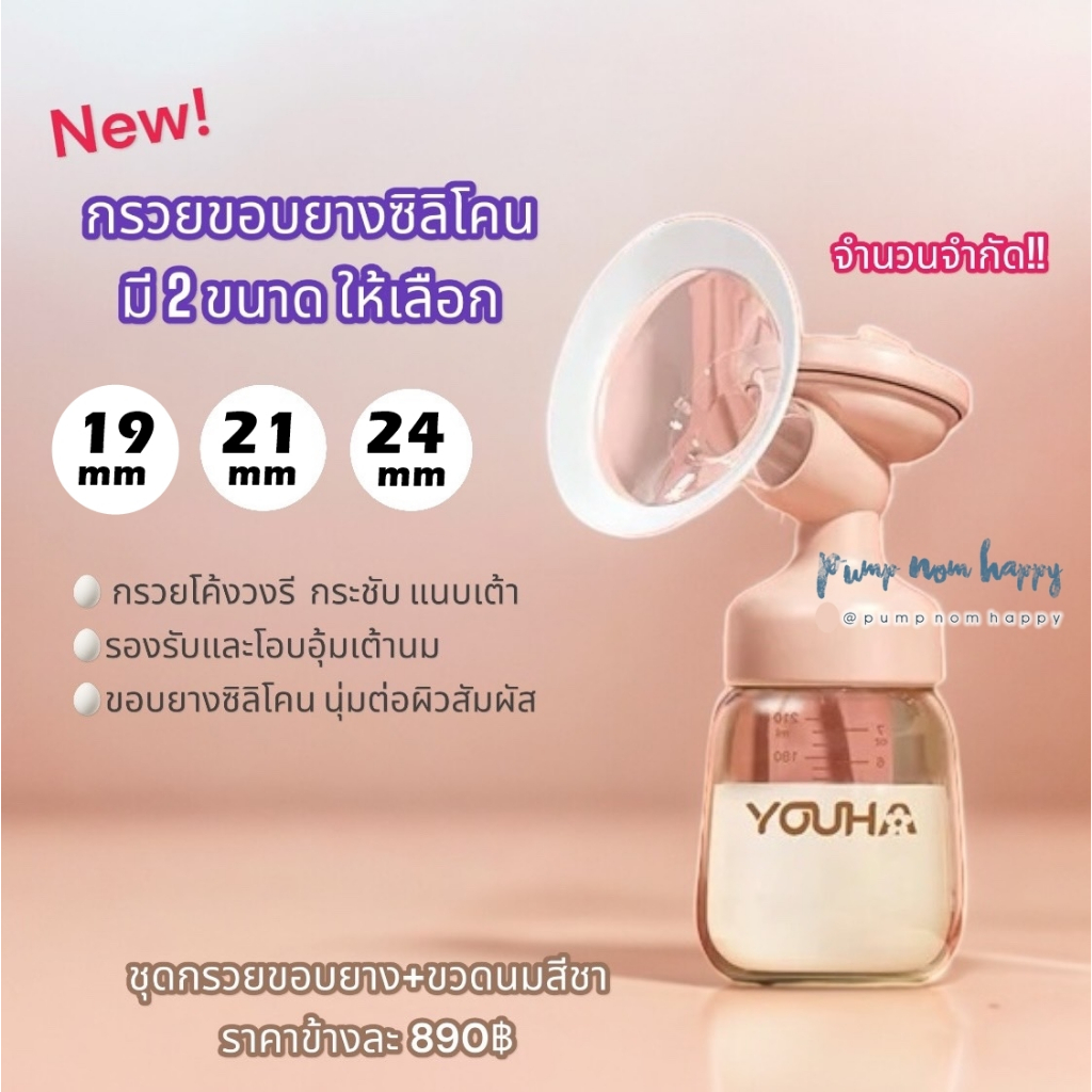 ชุดกรวยปั้มนม Youha Plus ราคาต่อข้าง (กรวย+ข้อต่อ+แผ่นไดอะเฟรม+ฝาปิดไดอะเฟรม+วาล์ว และ ขวดสีชา 7oz)