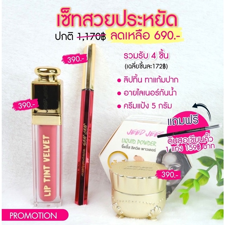 ครีมแป้งขนาด5กรัม+💋ลิปทิ้นทาแก้มทาปาก+อายไลเนอร์+ดินสอเขียนคิ้วสลิมบราว👉รวมรับ4ชิ้น‼️เฉลี่ยชิ้นละ172฿