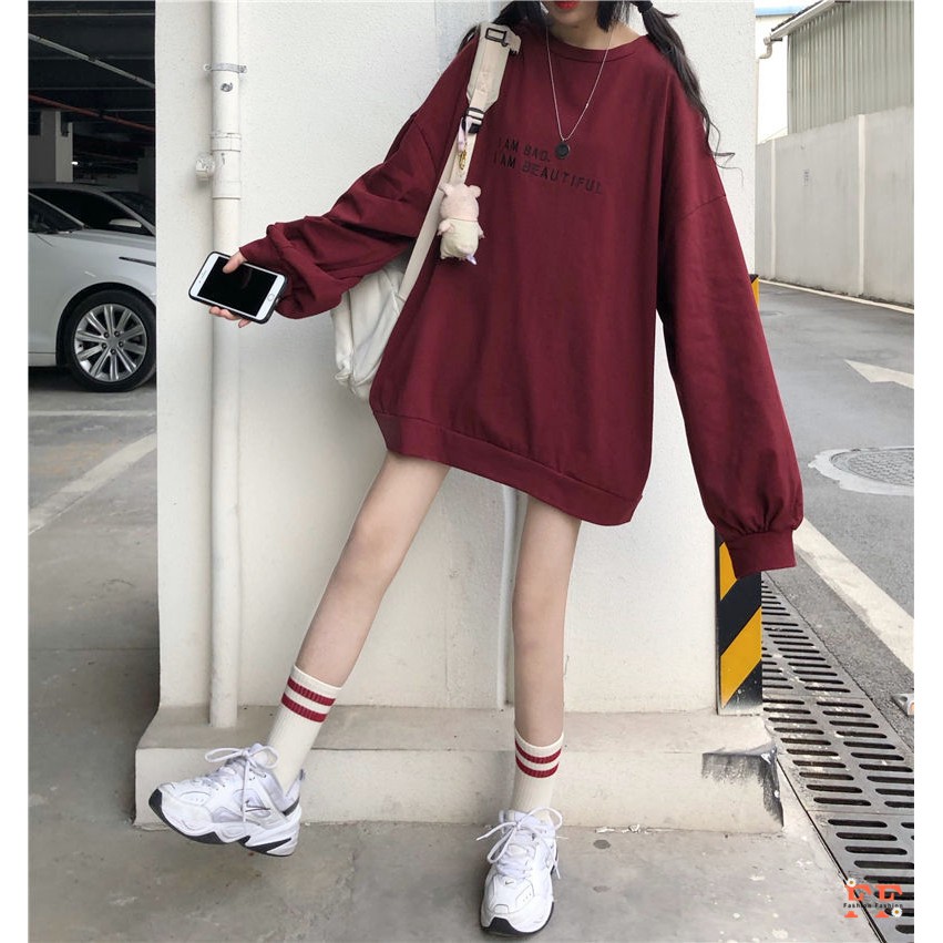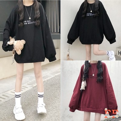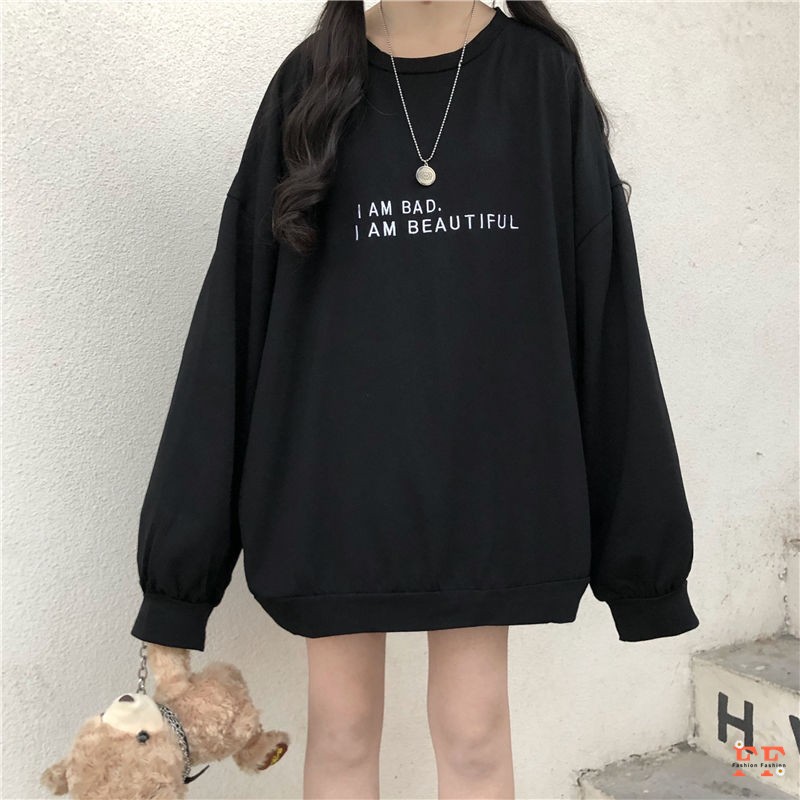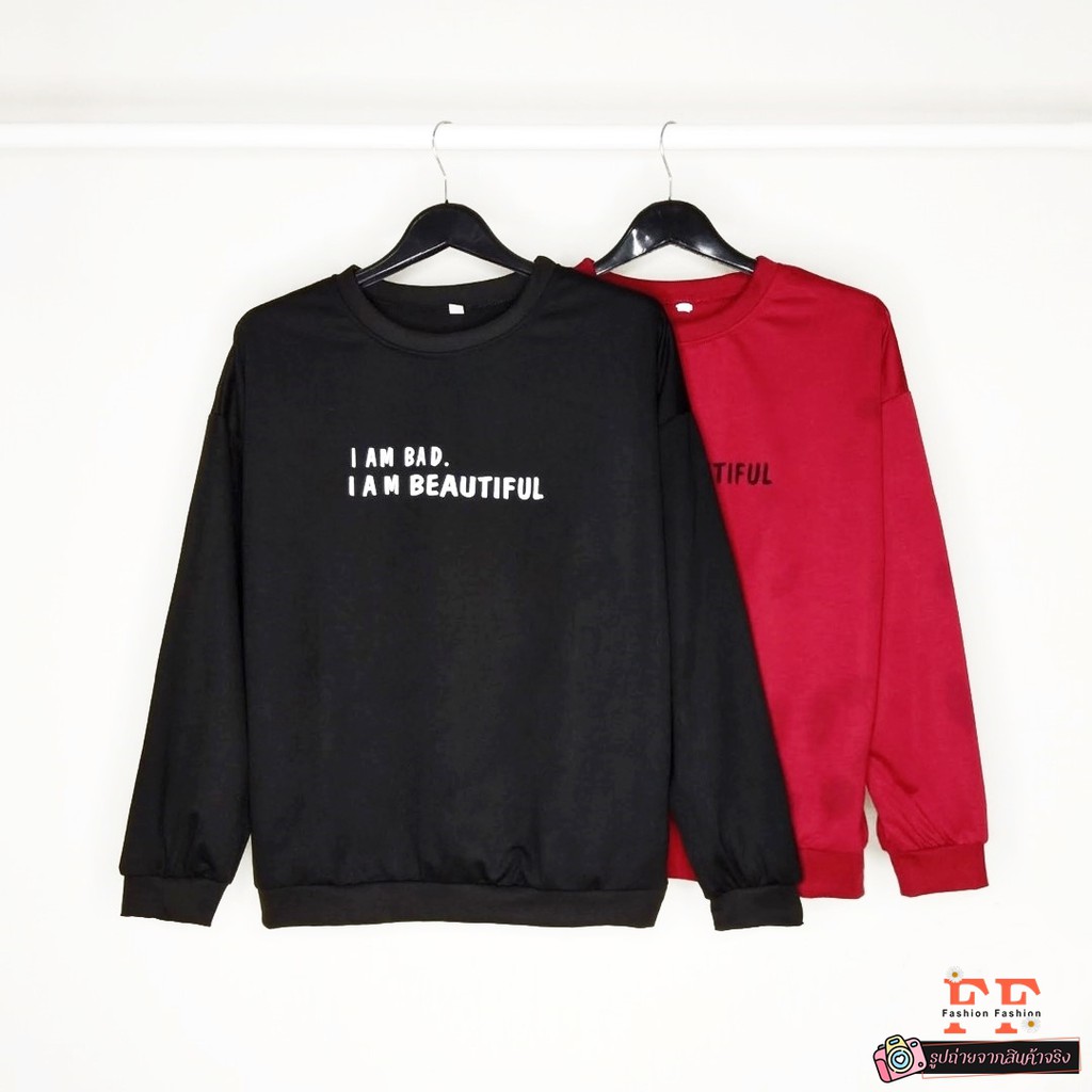 สต็อกไทย❌FF เสื้อแแขนยาว ผ้าคอตตอน จั๊มทรงโอเวอร์ไซส์ สีพื้น สกรีนลาย I AM BAD ใส่เป็นเดรสได้ เสื้อผ้าแฟชั่น