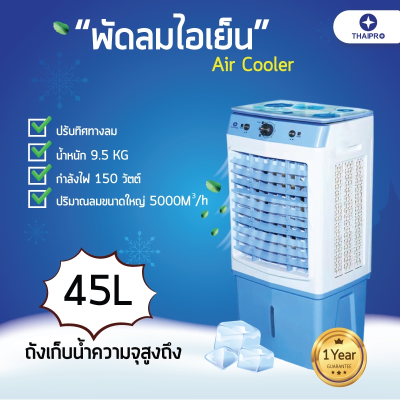 【ส่งฟรี】Thaipro พัดลมแอร์เย็นๆ พัดลมไอเย็น ขนาด45L รุ่นJM150 Cooling Fan รับประกัน1ปี