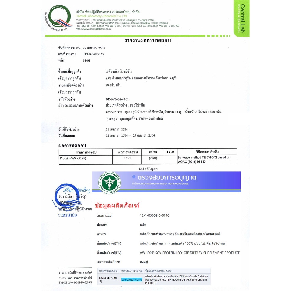 AW-Soy Protein Isolate 800 g. ซอยโปรตีนไอโซเลท 800 กรัม สูตรเจ