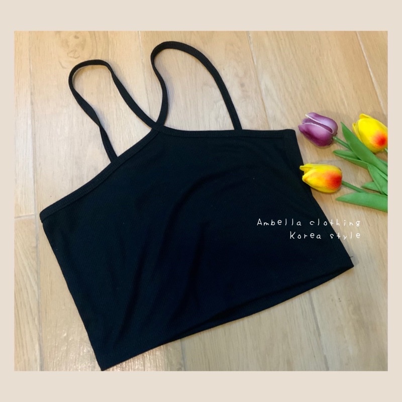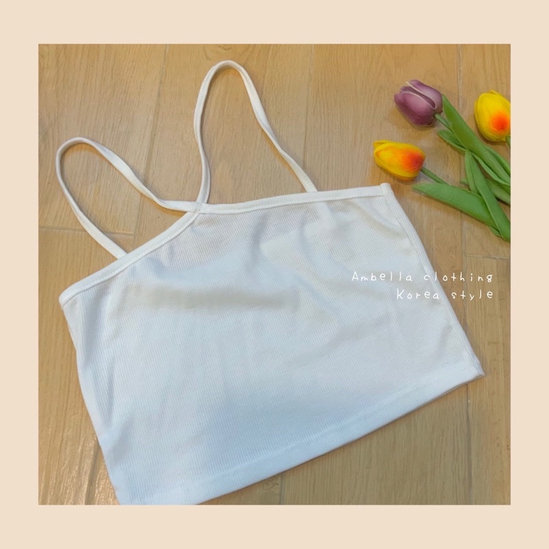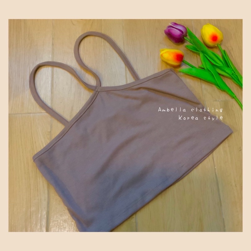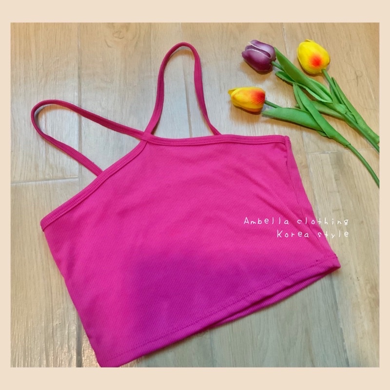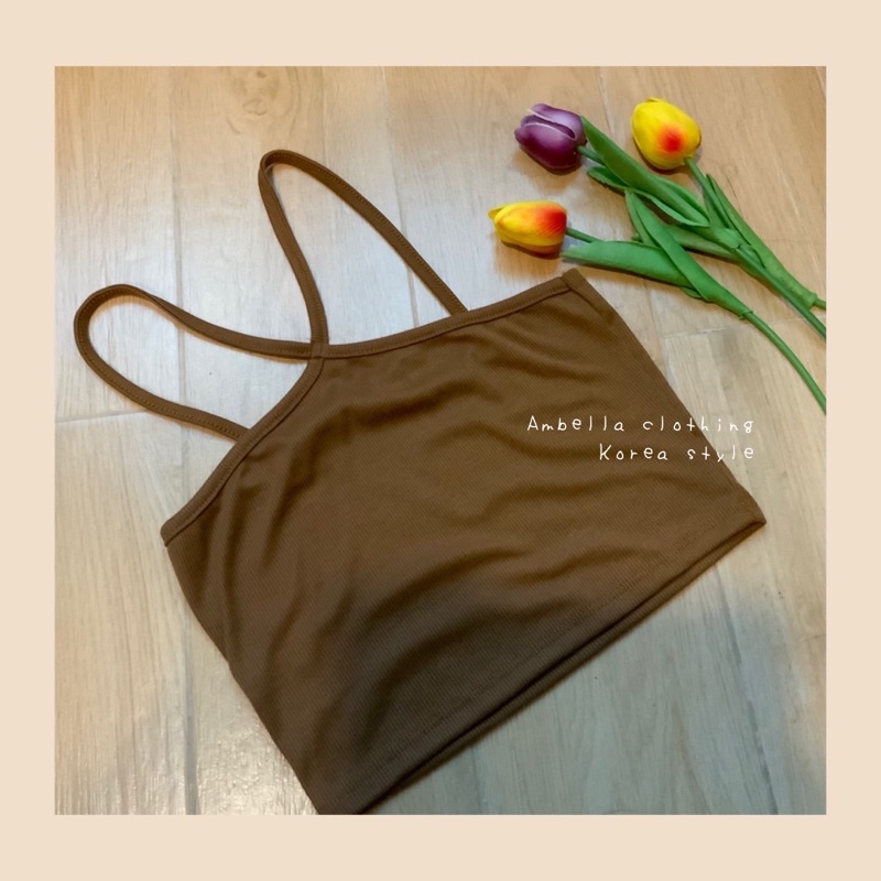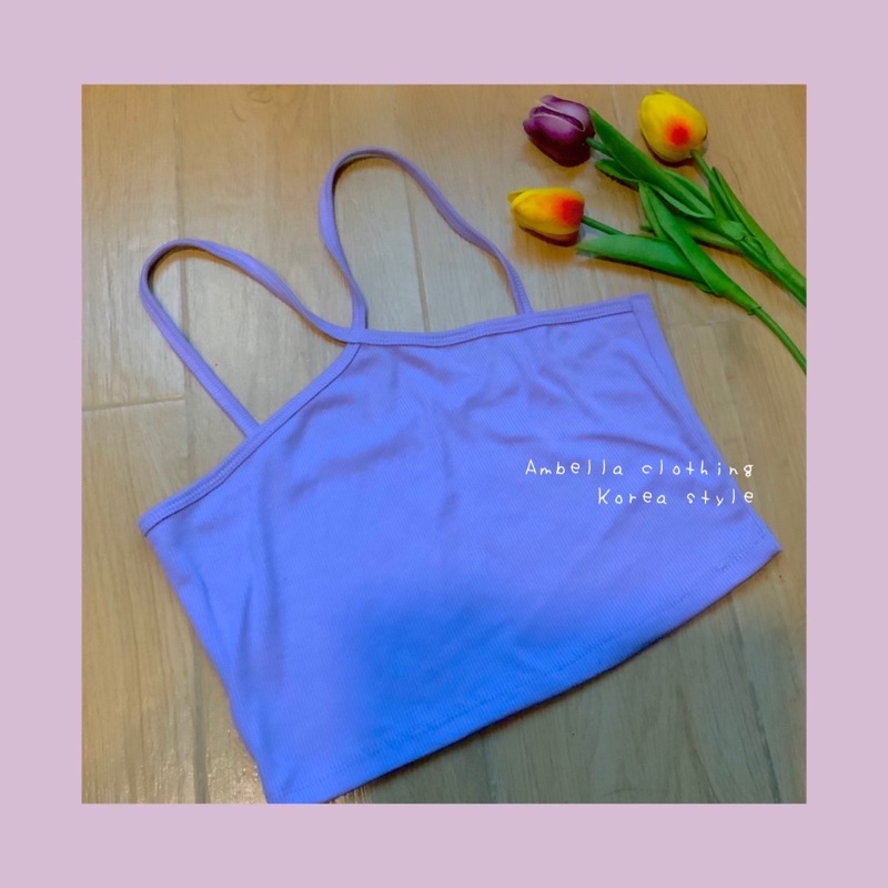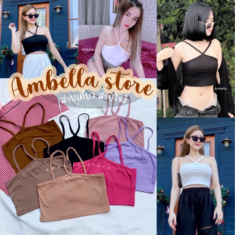 💜Ambella💜สายเดี่ยวสายไขว้ สีสวยทุกสี สายเดี่ยวผ้าร่อง ครอปเอวลอย เสื้อผ้าแฟชั่น2020
