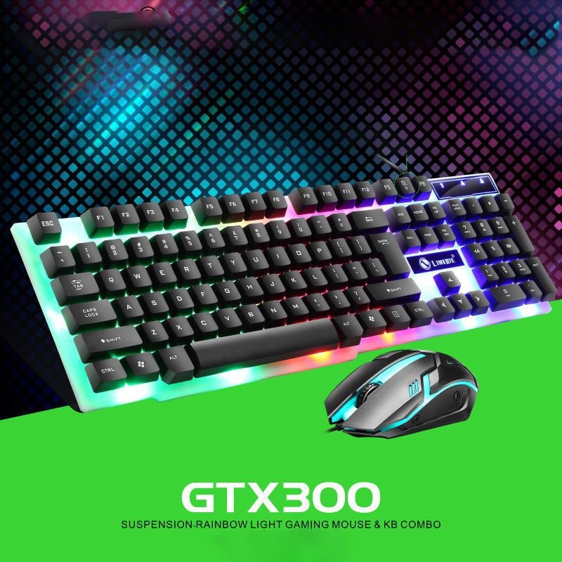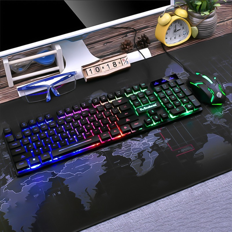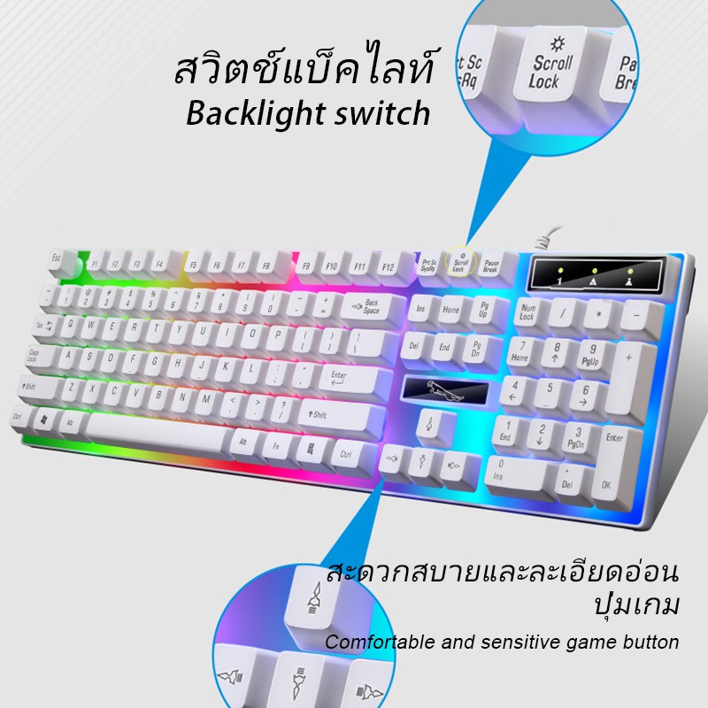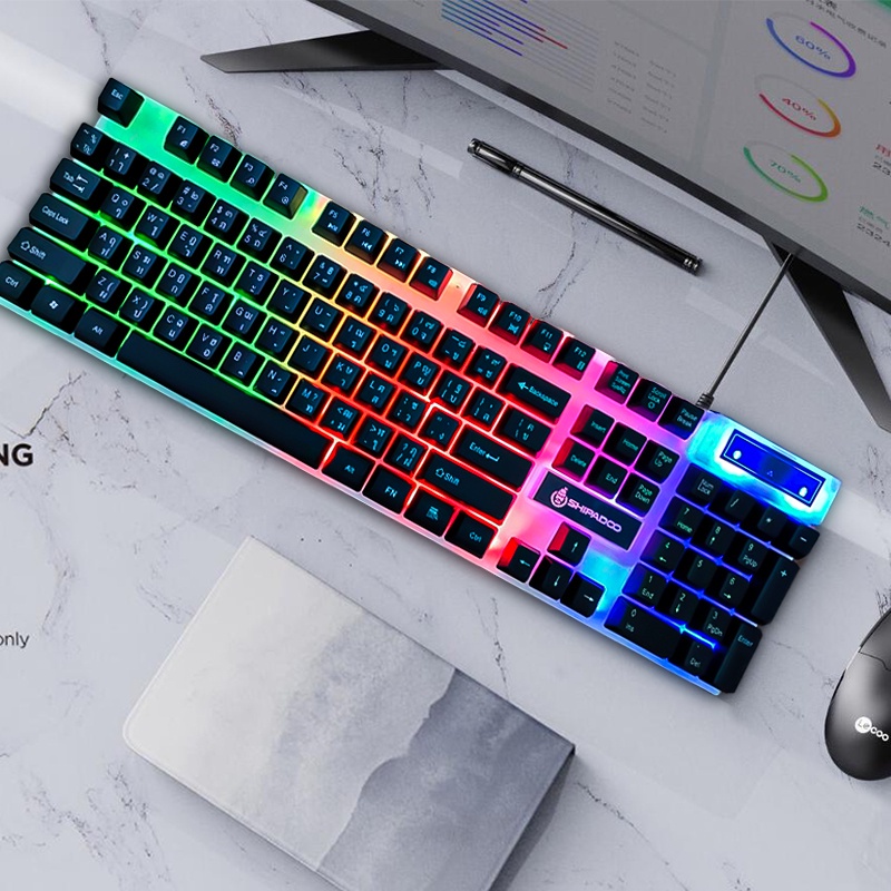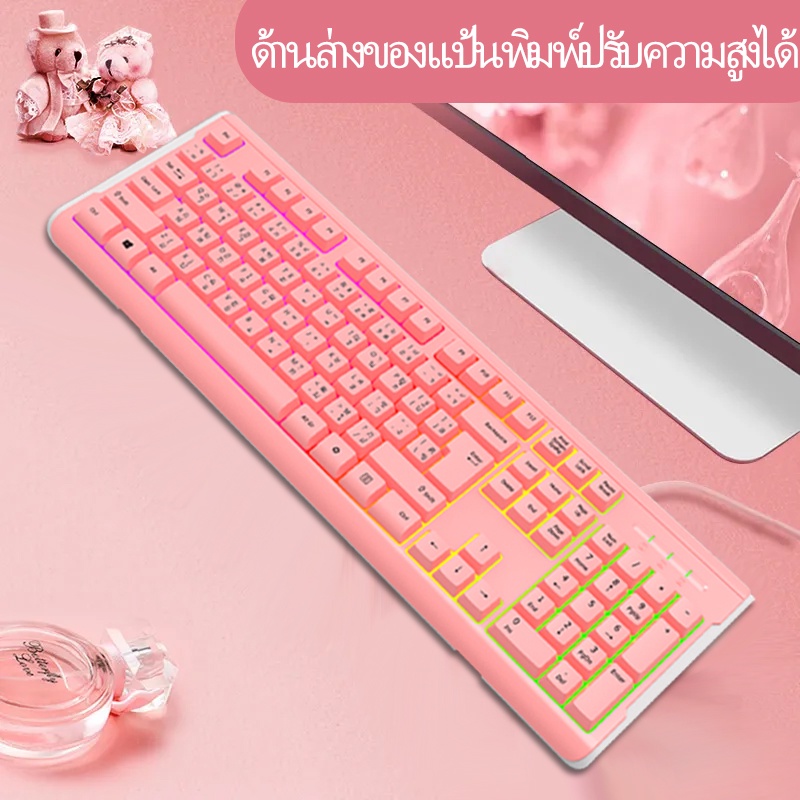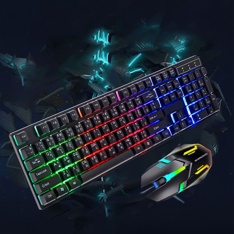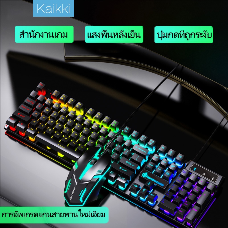 ชุดคีย์บอร์ดและเมาส์ มีไฟLED สายรุ้ง4สี สำหรับคอมพิวเตอร์ แล็ปท็อปในการทำงาน แป้นพิมพ์ คียบอร์ด