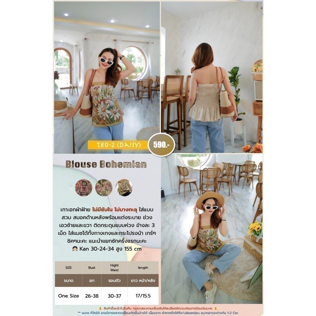 MyWay Brand : Top เสื้อ - Blouse Bohemian **ปล.ผ้าจะมีกลิ่นน้ำมันจักร ซักแล้วกลิ่นจะจางหายไปน้า