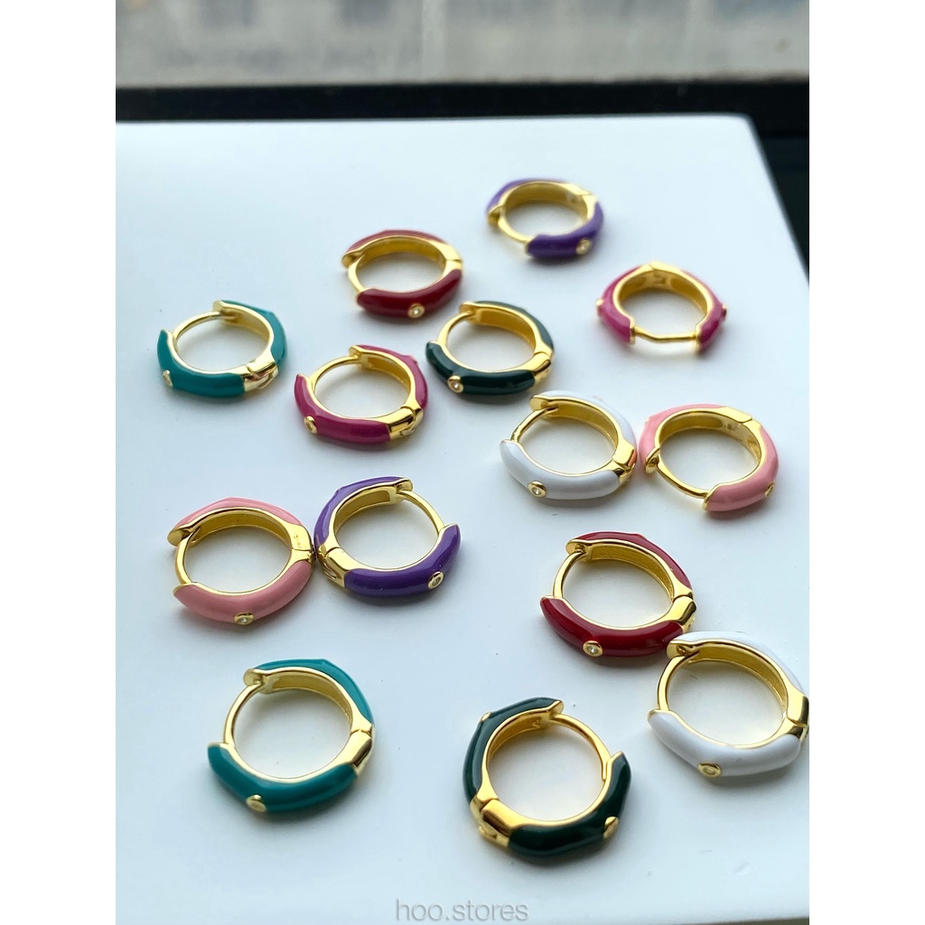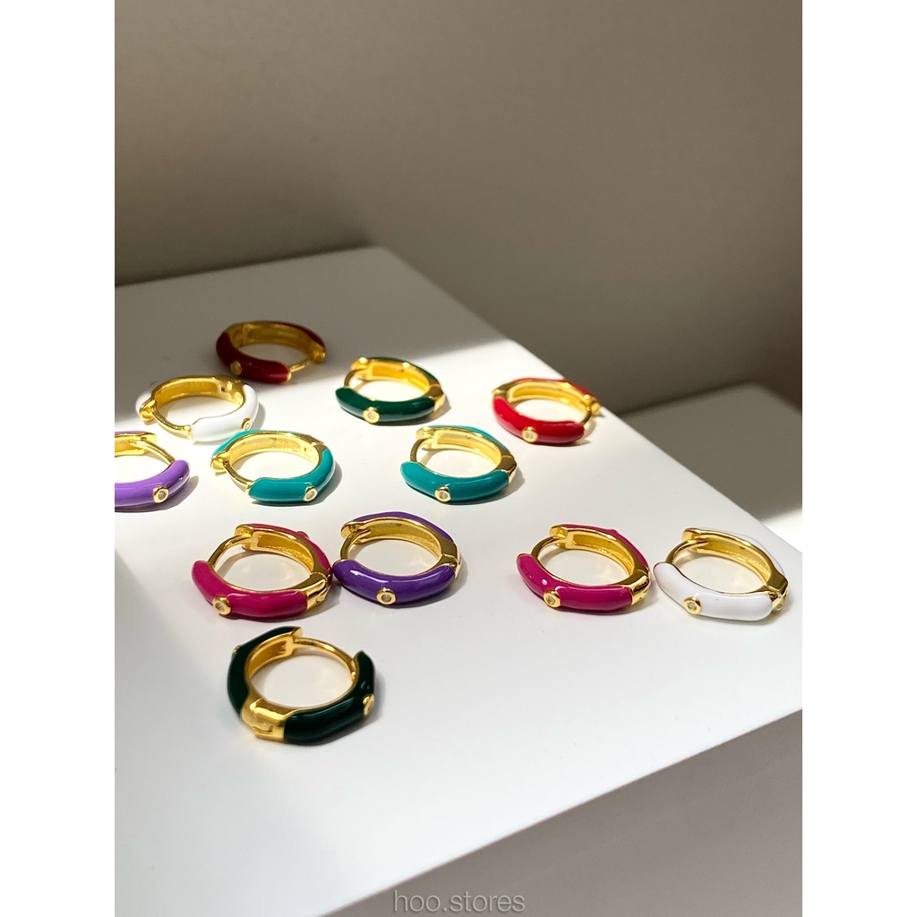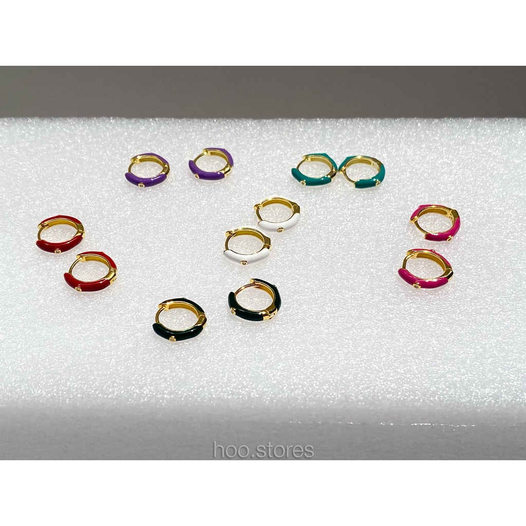 (Silver 925) hoo.stores Color Mini Gem Circle Hoop ต่างหูห่วงเงินแท้ s925 ต่างหูห่วงสีๆรับซัมเมอร์