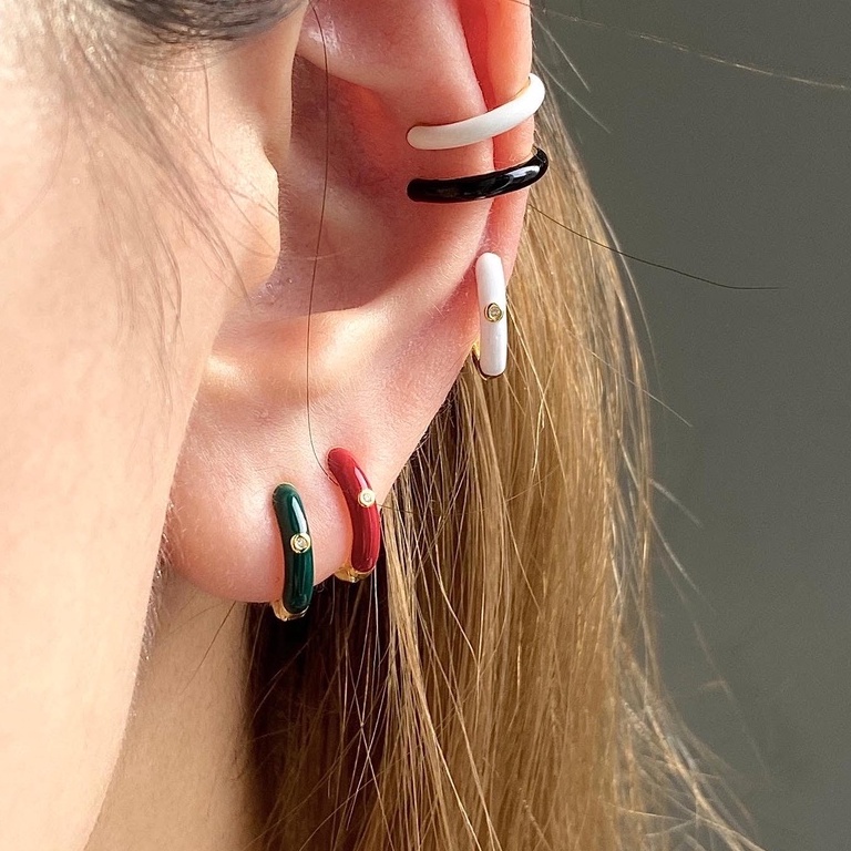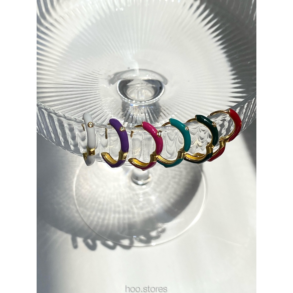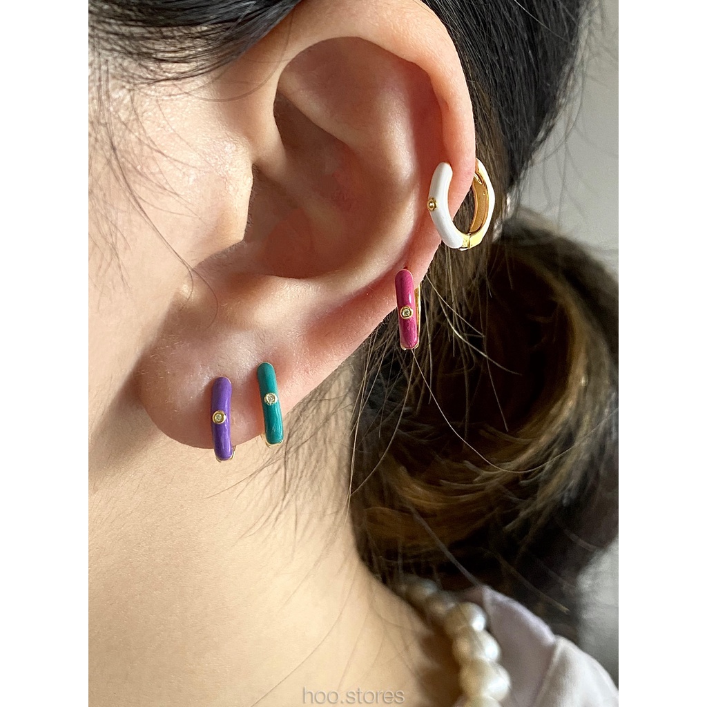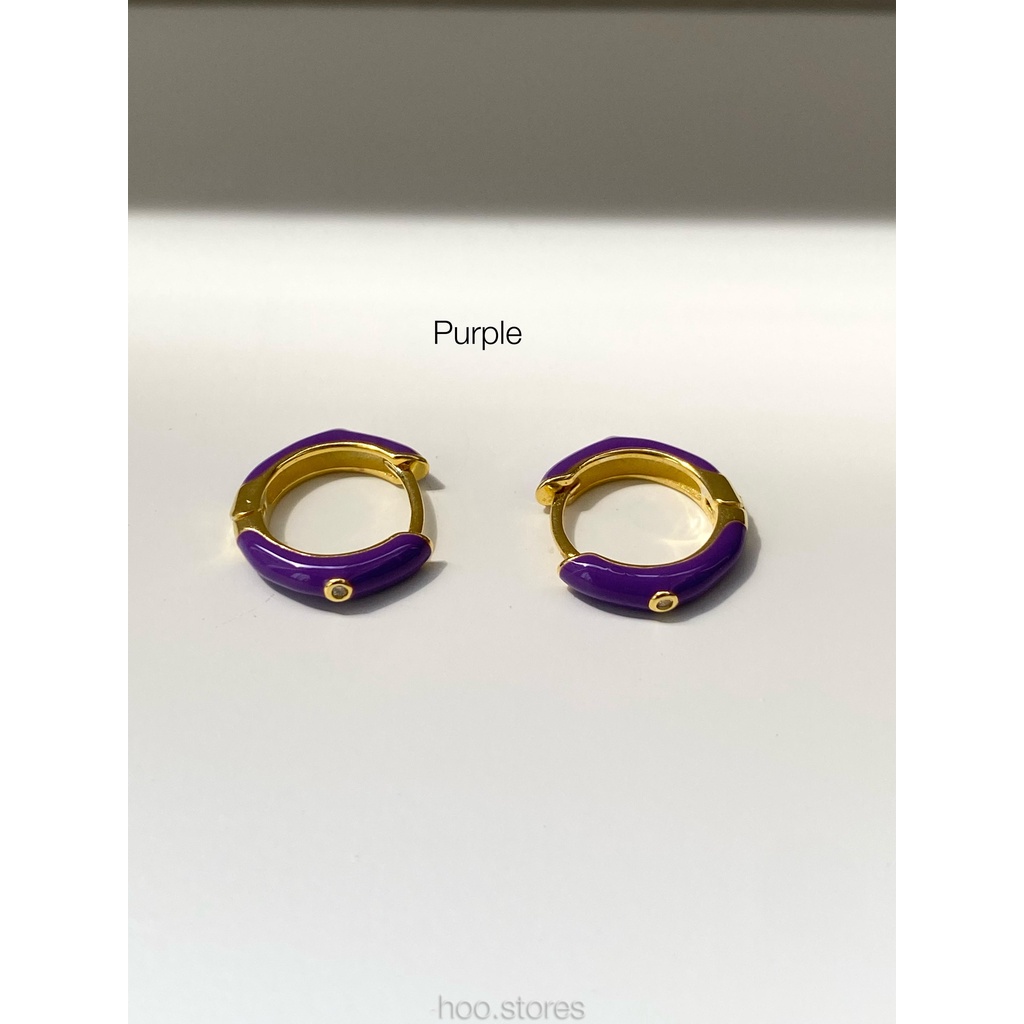 (Silver 925) hoo.stores Color Mini Gem Circle Hoop ต่างหูห่วงเงินแท้ s925 ต่างหูห่วงสีๆรับซัมเมอร์