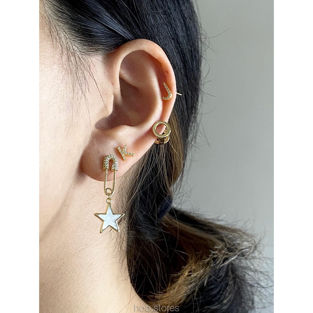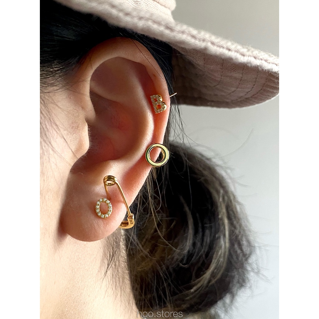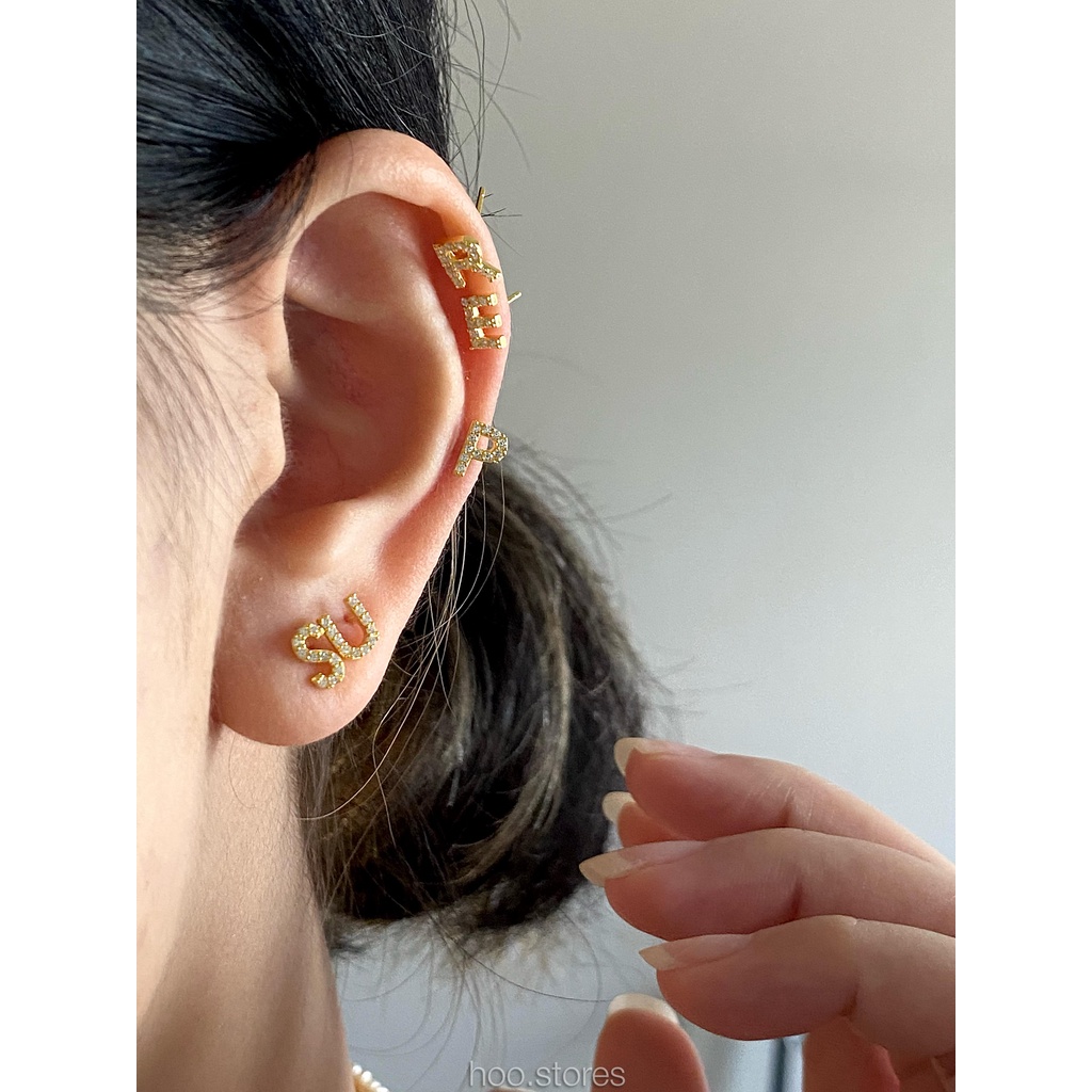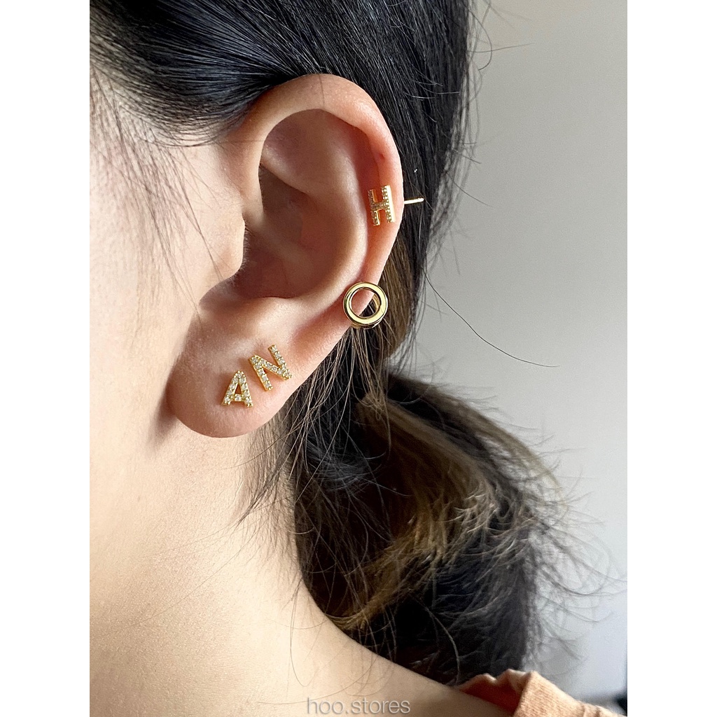 (Silver 925) hoo.stores Capital Alphabet Studs ต่างหูตัวอักษรเงินแท้ s925 ต่างหูตัวอักษรA-Zเงินแท้