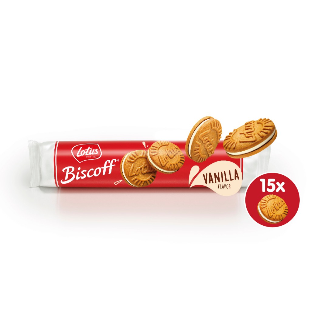 Lotus Biscoff sandwich 150 g. 1 แพ็คมี 15 ชิ้น มี 3 รส มี Halal