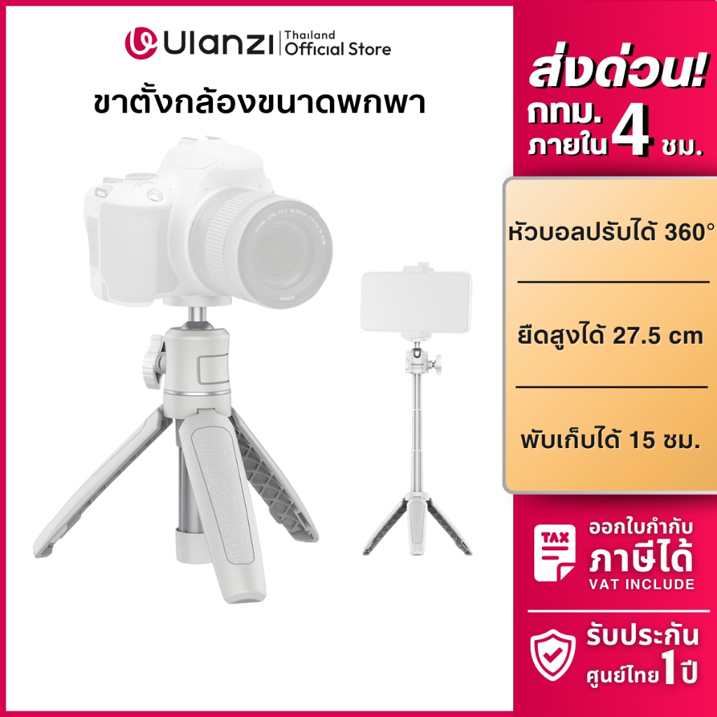 Ulanzi MT08 (สีขาว) ขาตั้งกล้องพกพา ไม้เซลฟี่ ยืดได้ รองรับกล้องคอมแพ็ค Mirrorless สำหรับถ่ายวิดีโอ