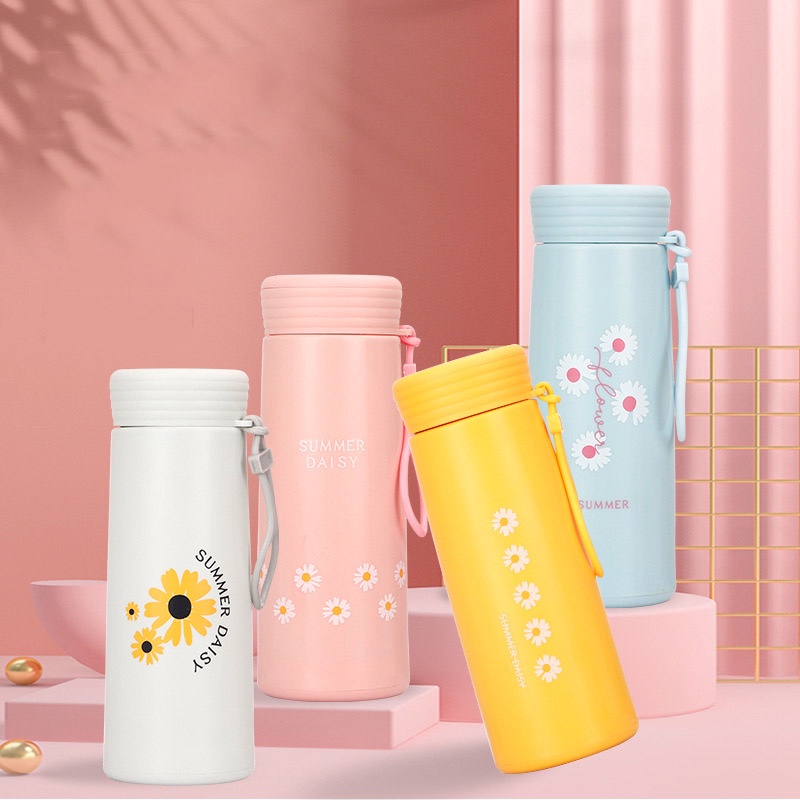 (สินค้าพร้อมส่งจากไทย) กระบอกน้ำ ลายดอกเดซี่ ขนาด 400 ml. รุ่น KB-25