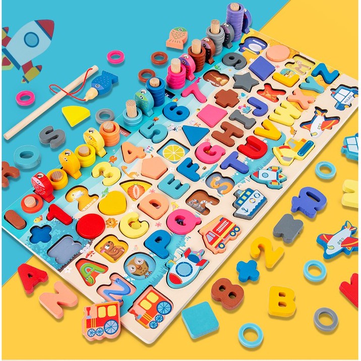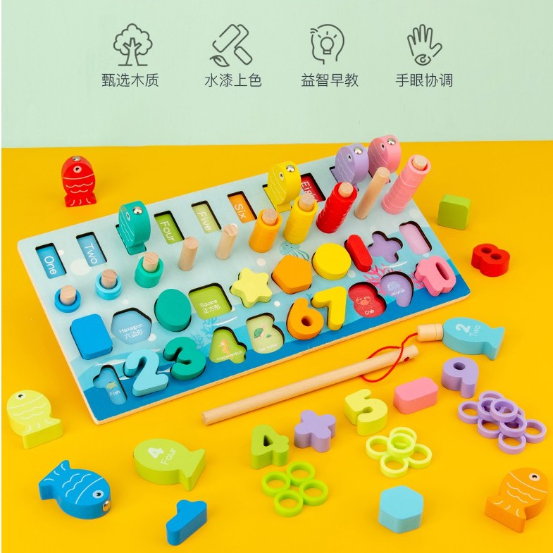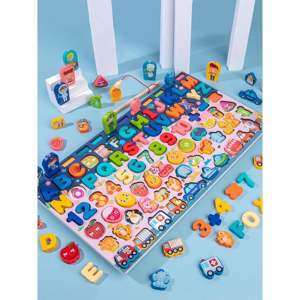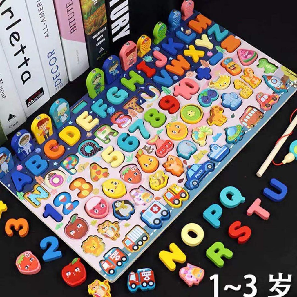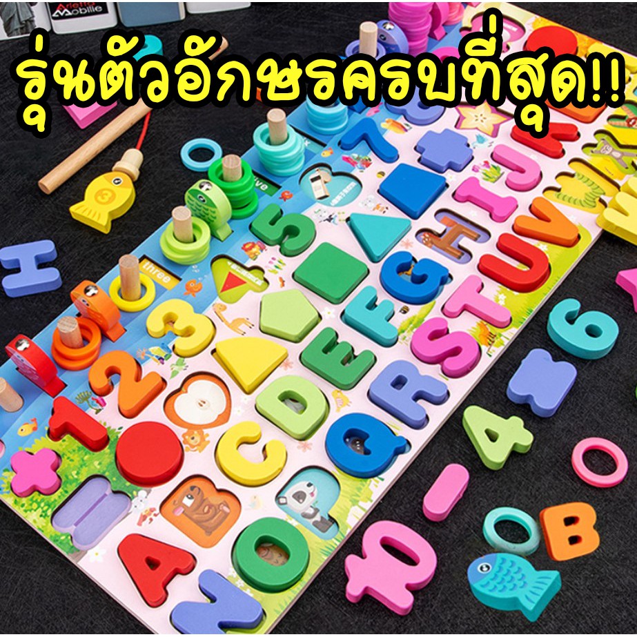 บล็อคไม้ เสริมพัฒนาการ อักษร ครบที่สุด ตกปลาแม่เหล็ก อักษร ตัวเลข รูปทรง กระดานไม้ของเล่น ของเล่นไม้ ของเล่นเด็ก