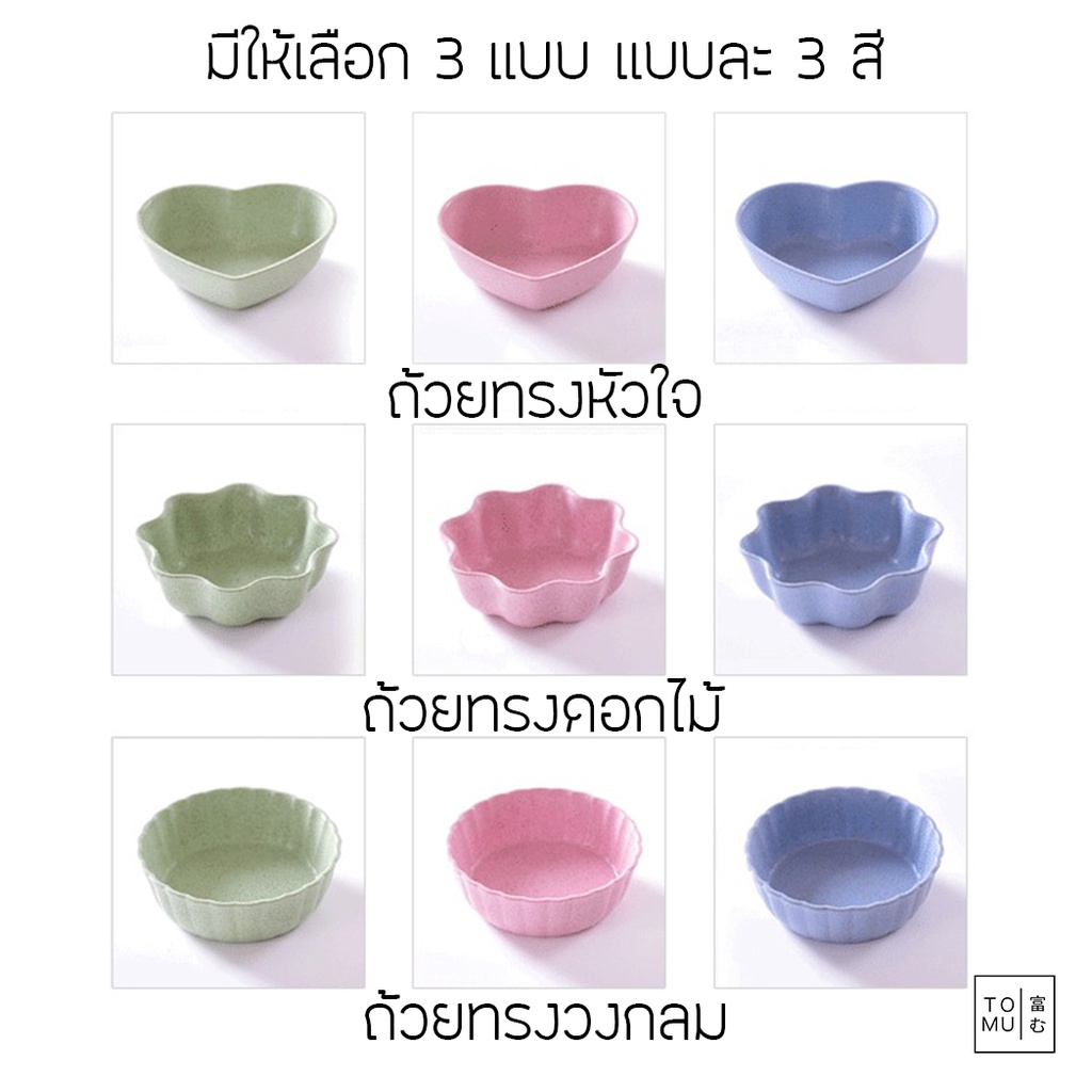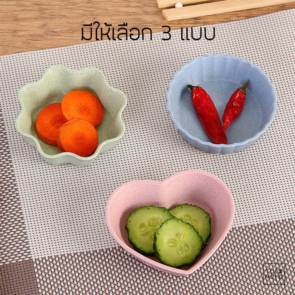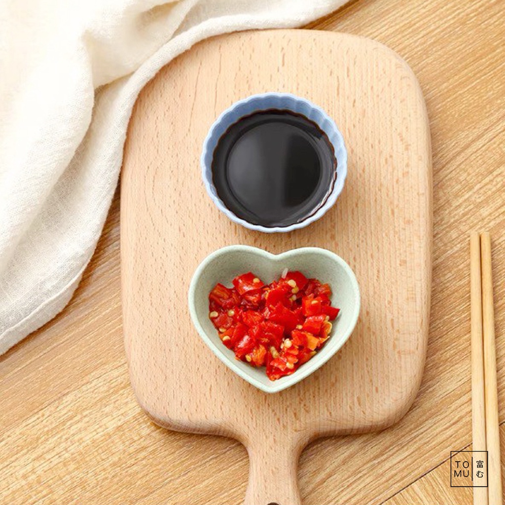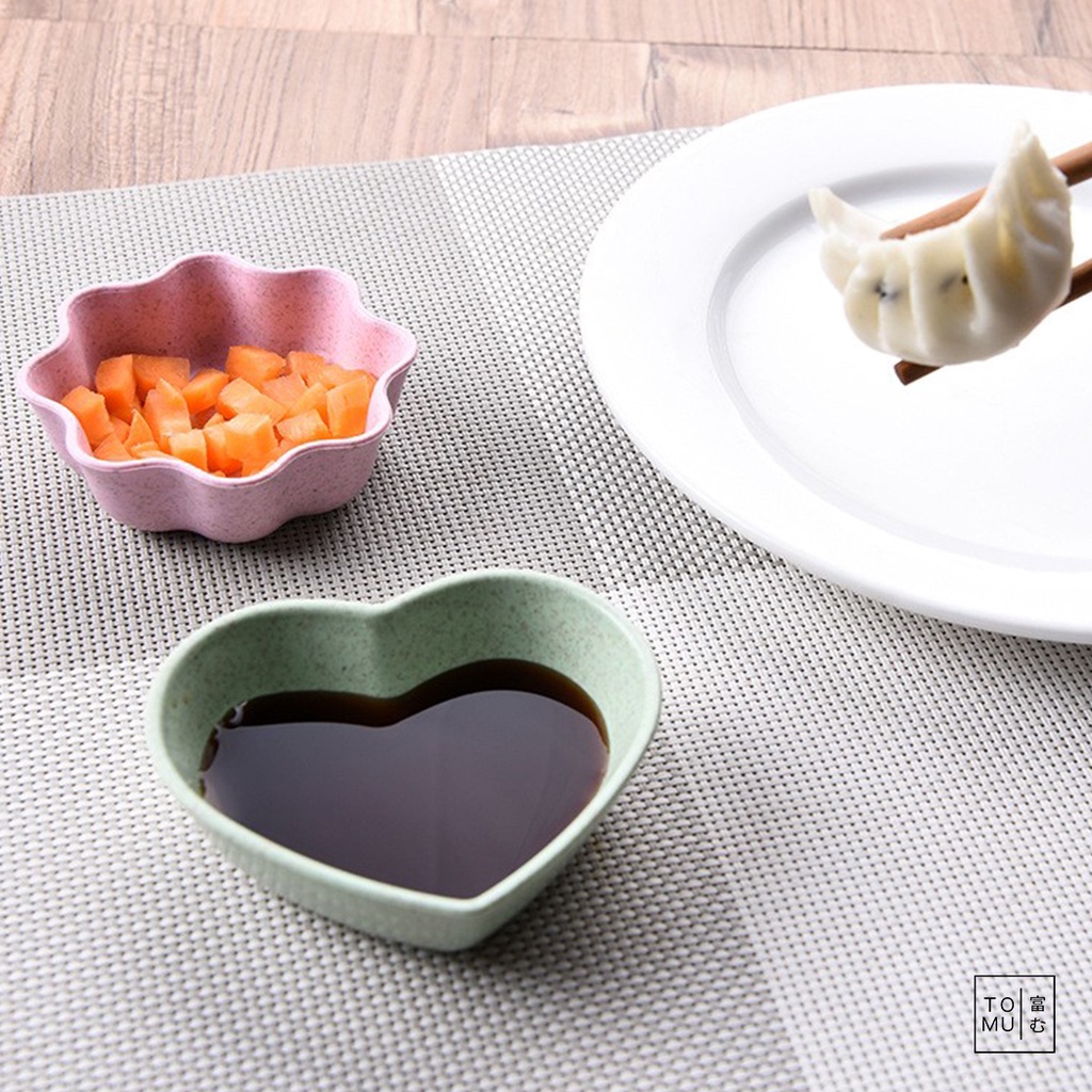 [พร้อมส่ง] Tomuhouse ถ้วยน้ำจิ้ม พลาสติกฟางข้าว มีให้เลือก 3 รูปทรง 3 สี หัวใจ ดอกไม้ ทรงกลม รูปแบบน่ารัก