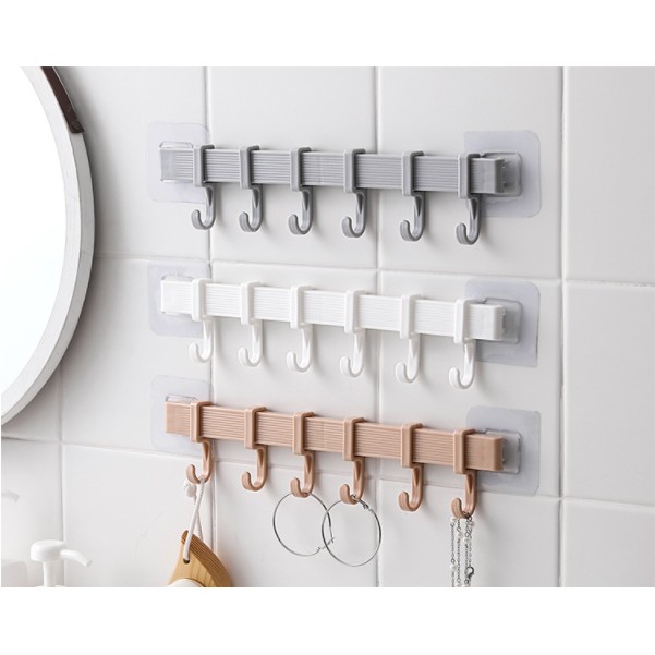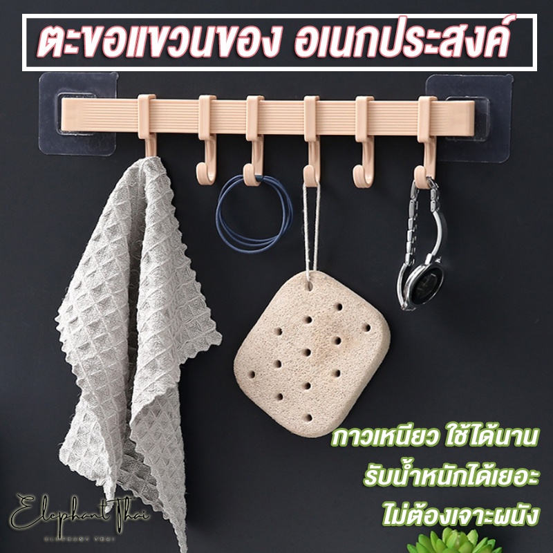 #C008 ตะขอเกี่ยวผ้า ตะขอแขวนของ ตะขอแขวนติดผนัง 6 ตะขอ