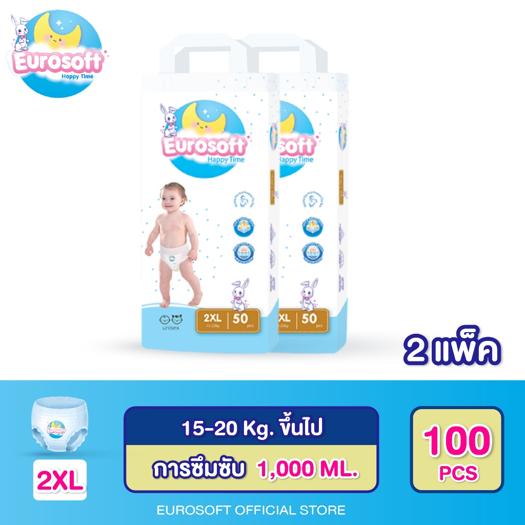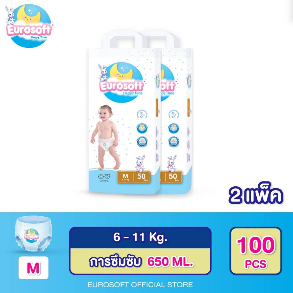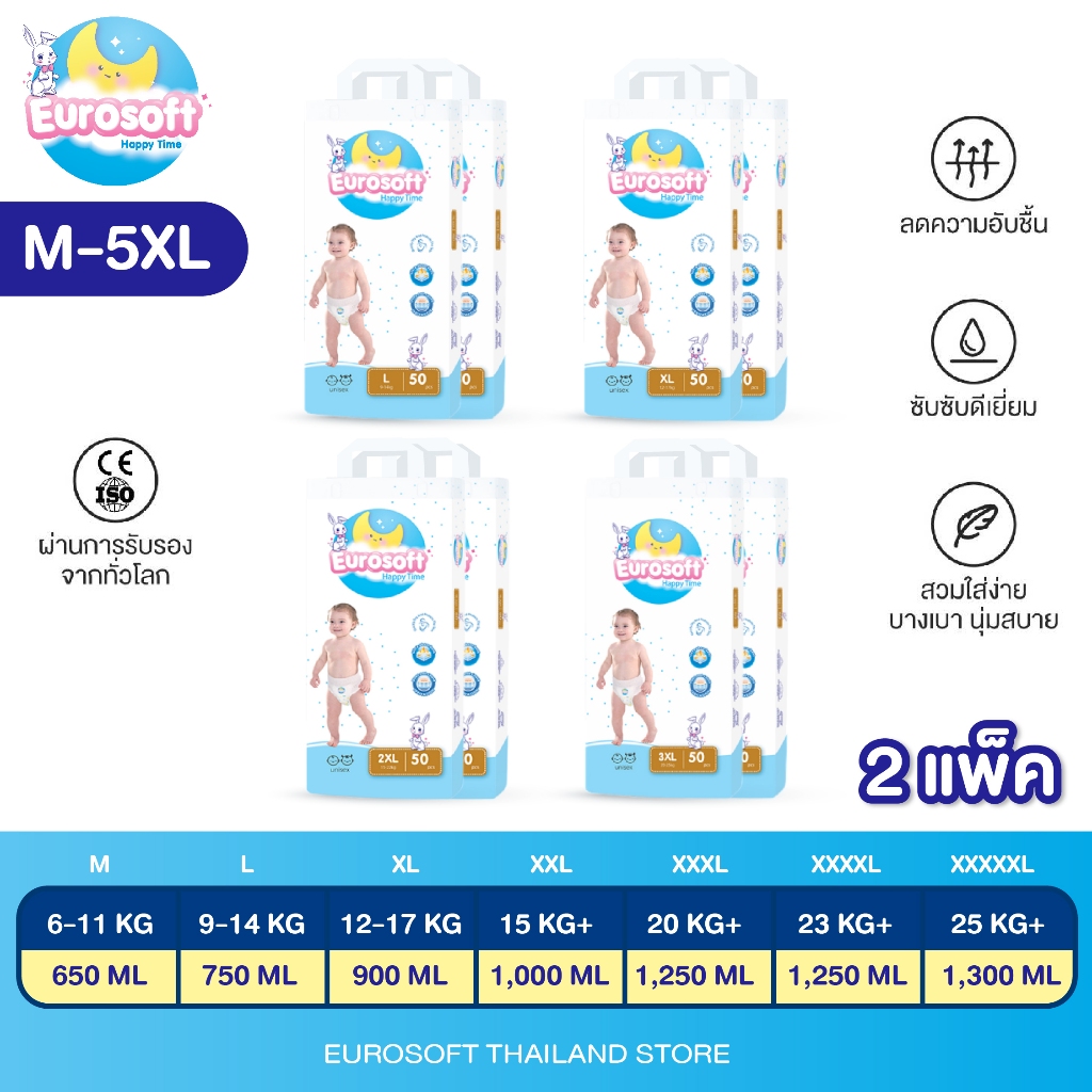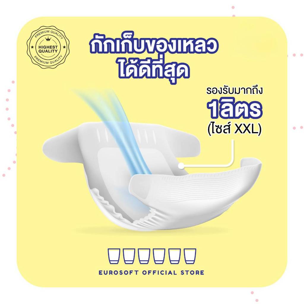 Eurosoft Premium 2 แพ็ค (Size M/L/XL/2XL/3XL/4XL/5XL) กางเกงผ้าอ้อม ผ้าอ้อมเด็กสำเร็จรูป บางพิเศษ