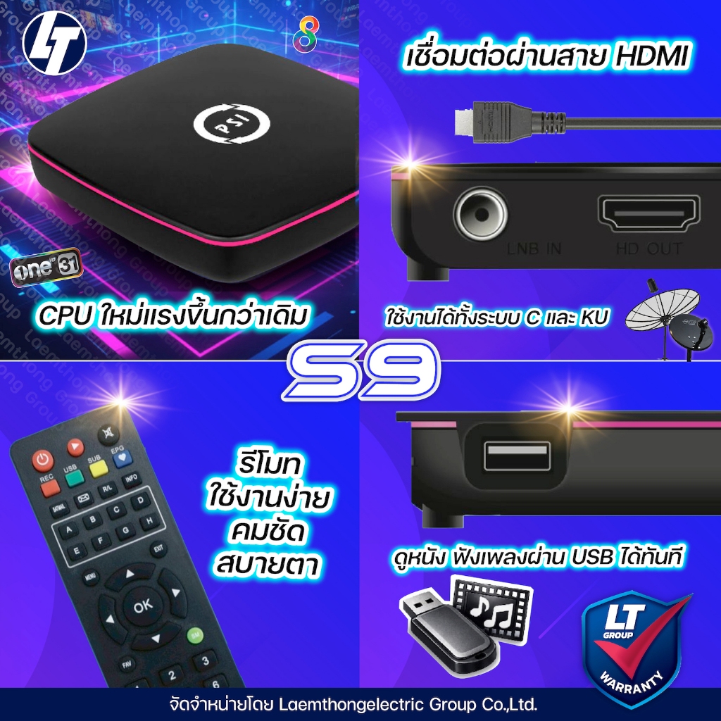 Psi S9 HD กล่องทีวีดาวเทียม c/ku : พร้อมส่ง ltgroup