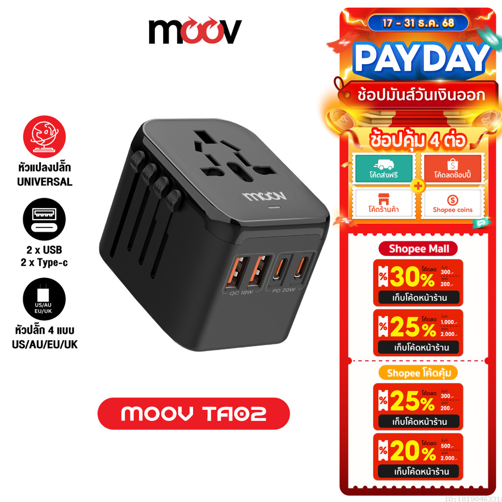 [524บ. ส่งด่วน] Moov TA02 หัวแปลงปลั๊กไฟ Universal Travel Plug Adapter หัวชาร์จ US AUS EU UK ใช้ได้ทั่วโลก