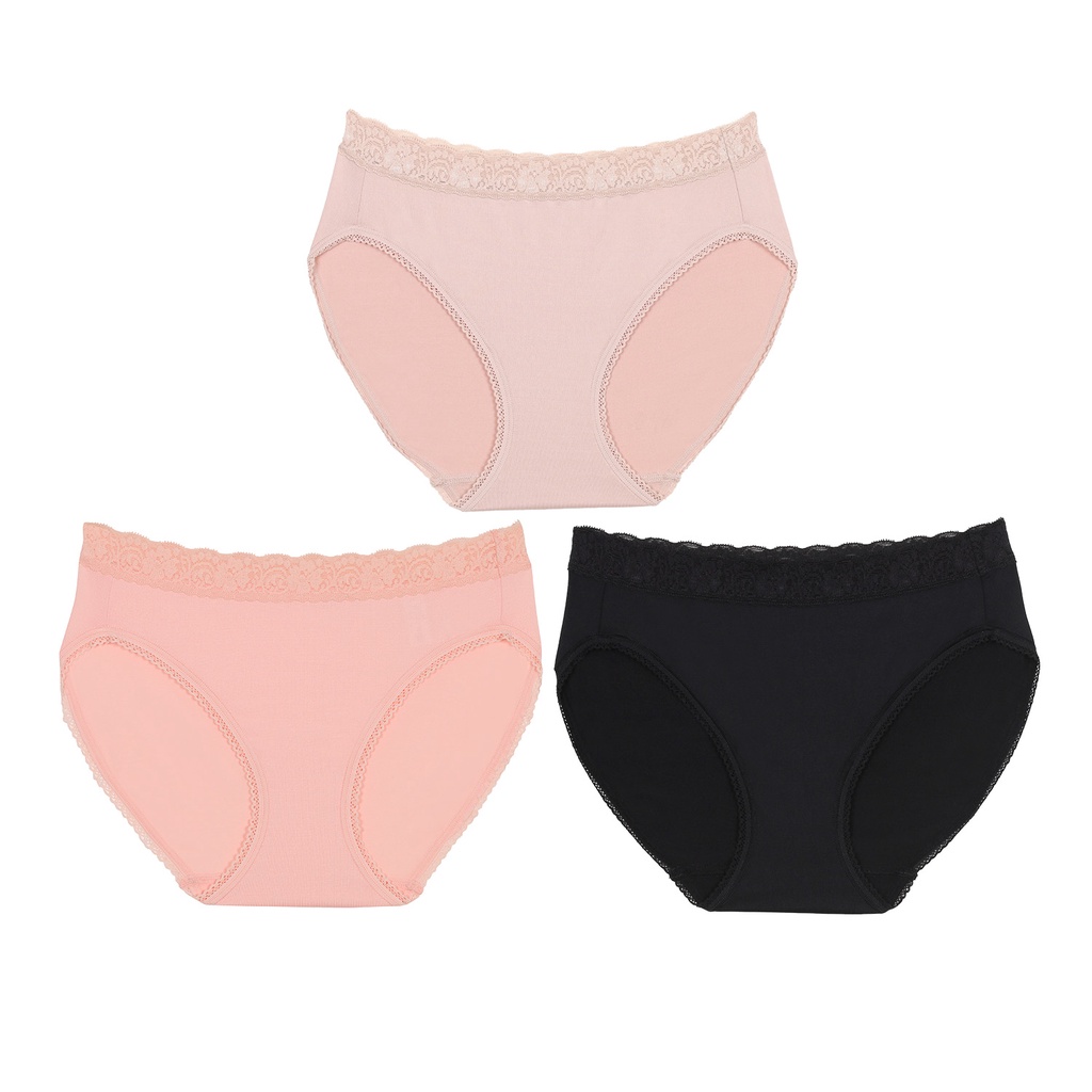 Wacoal Surprise Panty กางเกงในใส่สบายวาโก ้ รูปแบบBikini ขอบลูกไม้ แพ็ค 3 ชิ้น รุ่น WU1C35/WU1T35 สีเบจ-ดำ-ชมพูอมส้ม (OP)