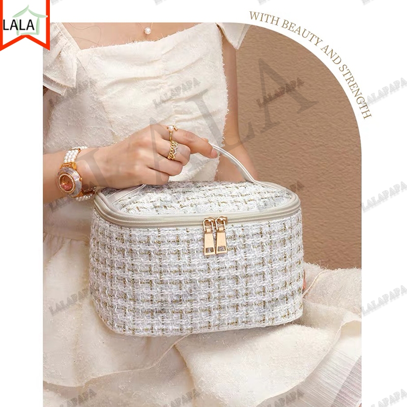 กระเป๋าเครื่องสําอางถัก แต่งหน้าความจุขนาดใหญ่ แบบพกพา มีซิป ค์สไตล์เกาหลี หลายสี