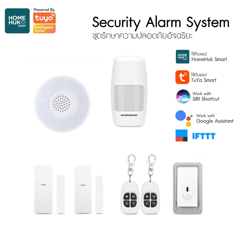 Smart Security Kit เชื่อมต่อ Wi-Fi สัญาณกันขโมย ตรวจจับความเคลื่อนไหว รุ่น SM-SECURITY1 - สีขาว (TUYA) [พร้อมส่งจากไทย]