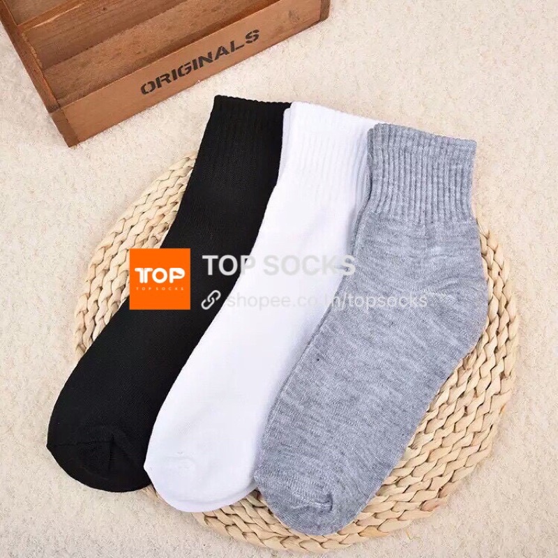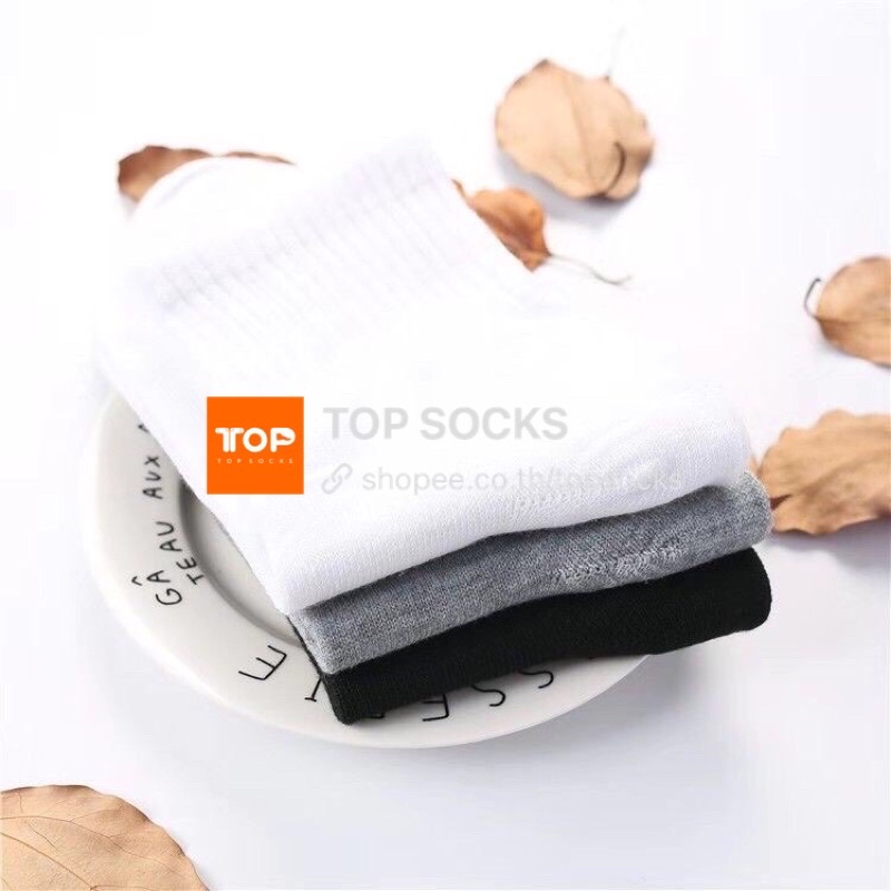 ⚡️ถุงเท้าข้อกลาง นักเรียน ขาว ดำ เทา ผ้านิ่ม ใส่สบาย พร้อมส่ง⚡️TOPSOCKS
