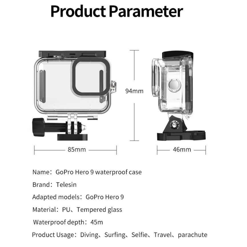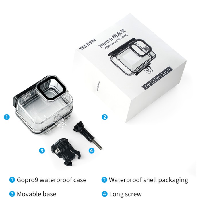 Telesin เคสกันน้ำคุณภาพสูง (Housing ดำน้ำ) และ filter 3 สี สำหรับ Gopro 13/12/11/10/9