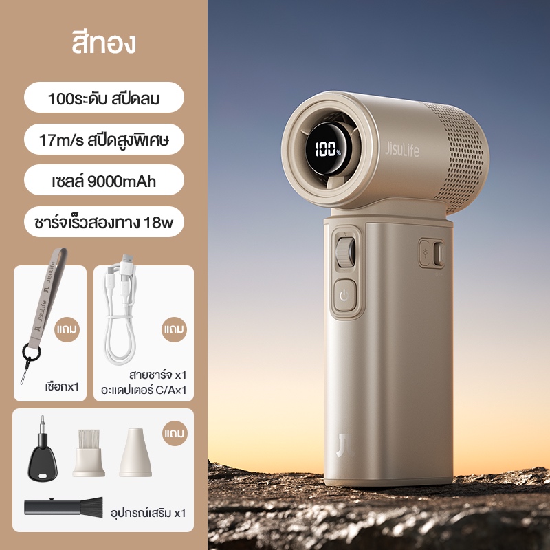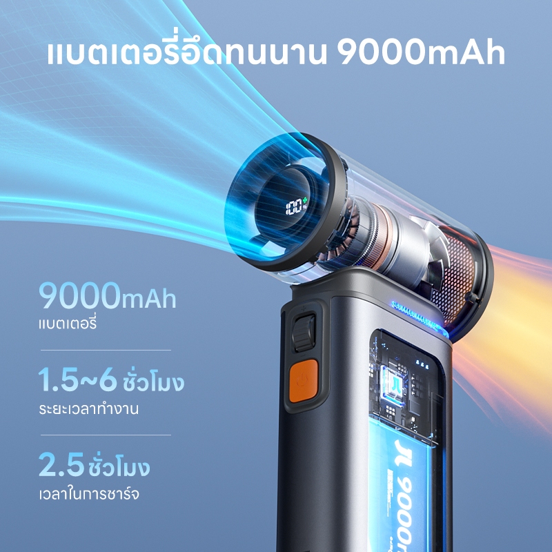 JisuLife 3 in 1 พัดลมพกพา แบตเตอรี่ 9000 mAh ชาร์จได้ พร้อมฟังก์ชั่นกันฝุ่น ขนาดเล็ก พร้อมความเร็ว 1-100 ระดับ จอแสดงผล LED ตั้งแคมป์กลางแจ้ง