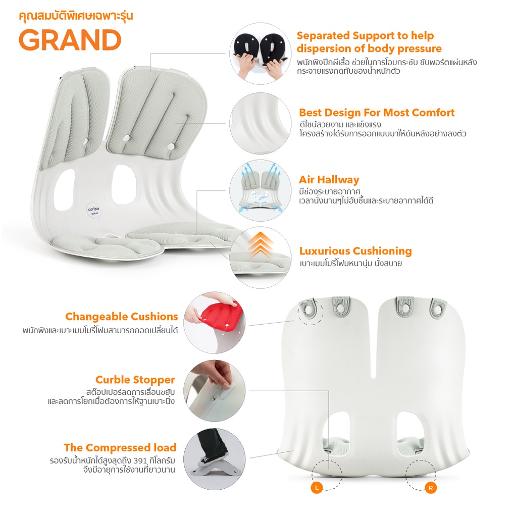 เบาะรองนั่ง รองหลัง Curble - GRAND เก้าอี้ นั่งพื้น นั่งรถยนต์ ออฟฟิศซินโดรม ปวดหลัง สะโพก Ergonomic