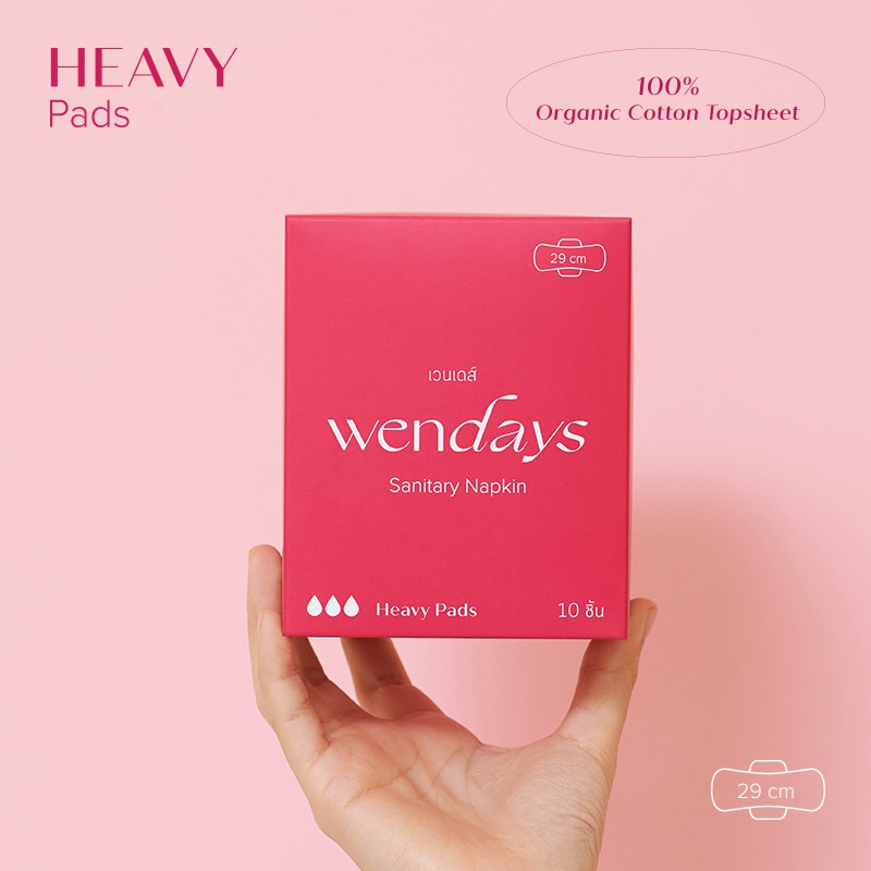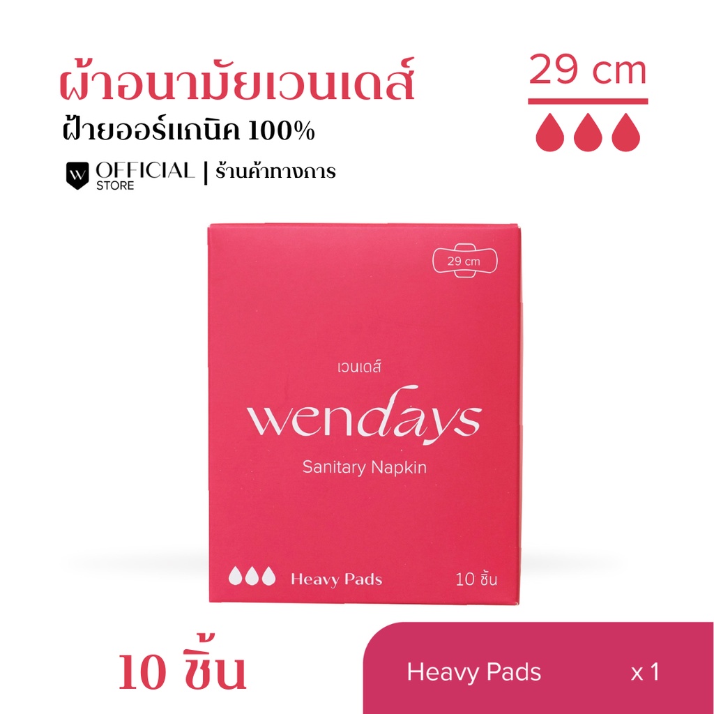 (ซื้อ 1 แถม 1) WENDAYS - Heavy Pads ผ้าอนามัยออร์แกนิคและย่อยสลายได้ แบบพิเศษ 29 ซม. / 10 ชิ้น (L2)