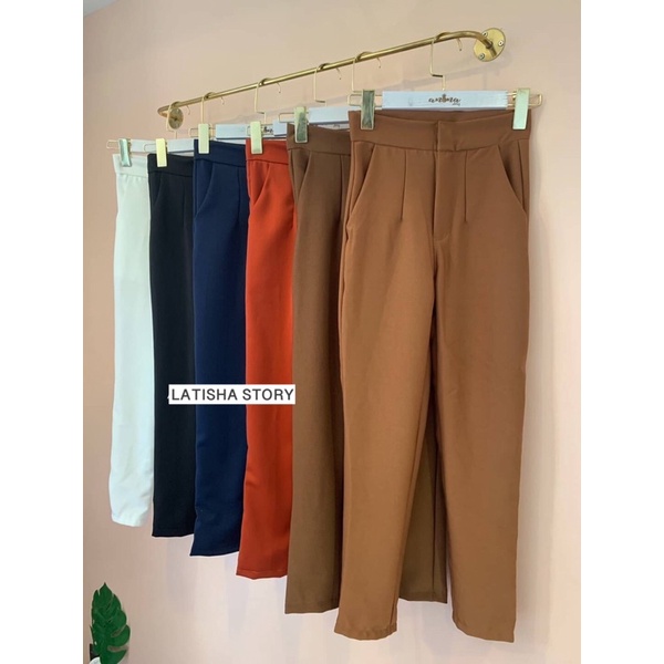 (B)กางเกงผ้าฮานาโกะ 8 ส่วนตะขอหน้ากระเป๋า2ข้าง งานป้าย🔥พร้อมส่ง