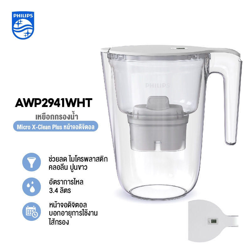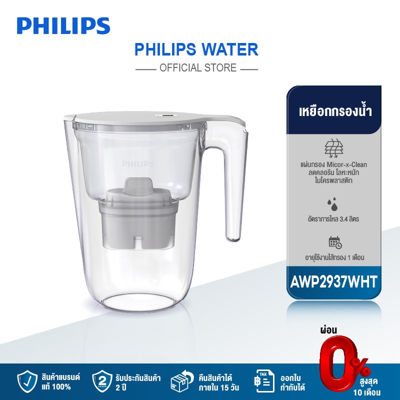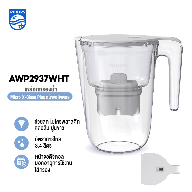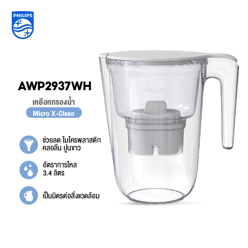 philips water AWP2937WHT เหยือกกรองน้ำ ขนาด 3.4 ลิตร การกรอง4ชั้น Micro X- Clean Plus