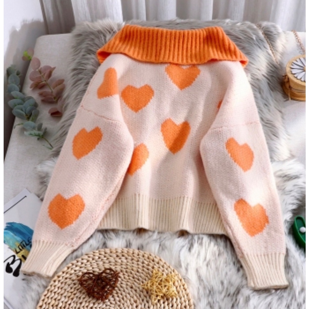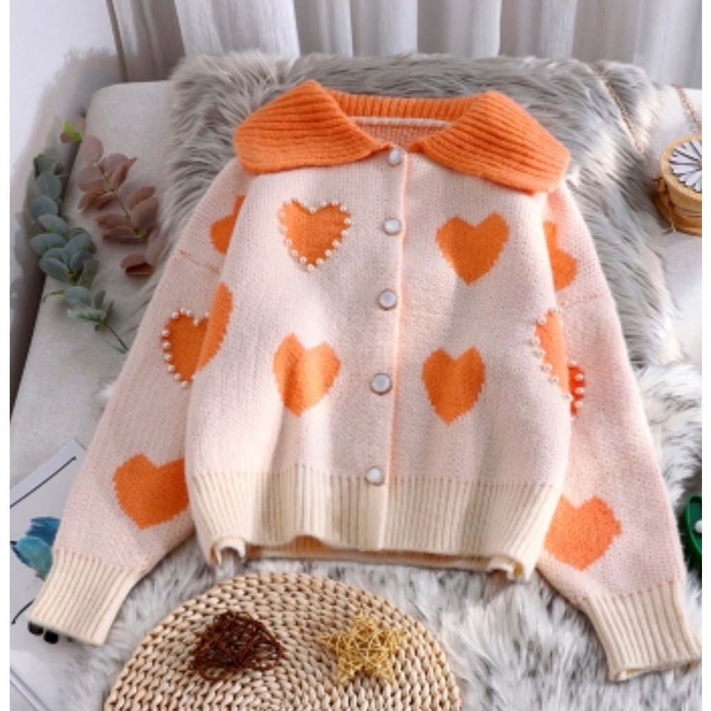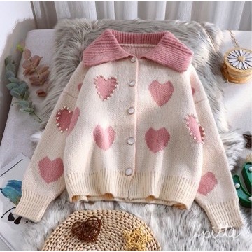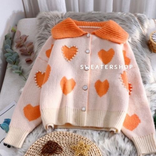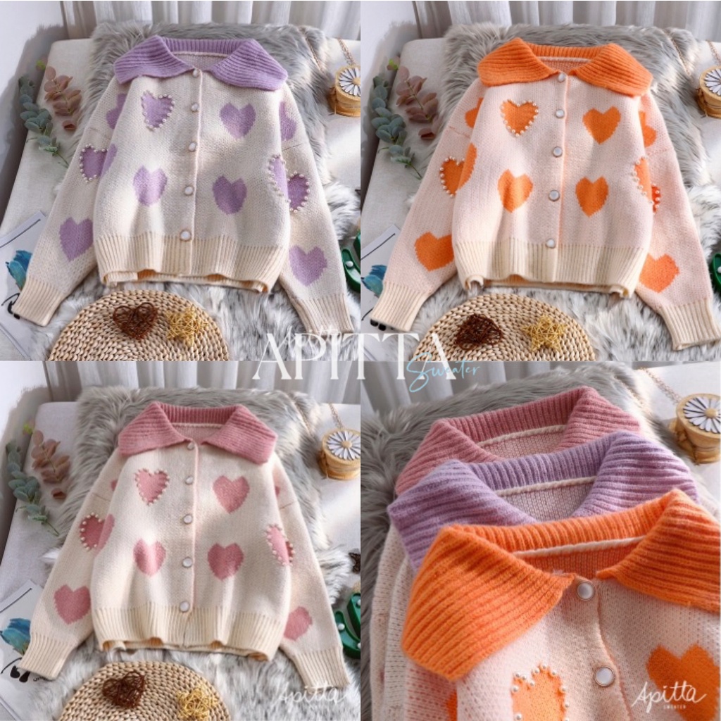 Apitta Sweater เสื้อกันหนาวไหมพรม ผ้านุ่มปักมุก ลายหัวใจน่ารักมาก มาใหมไม่ซ้ำใคร พร้อมส่ง #A01