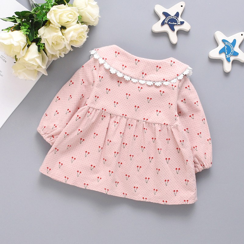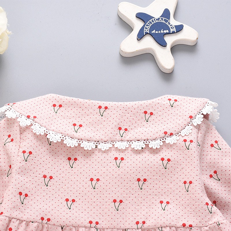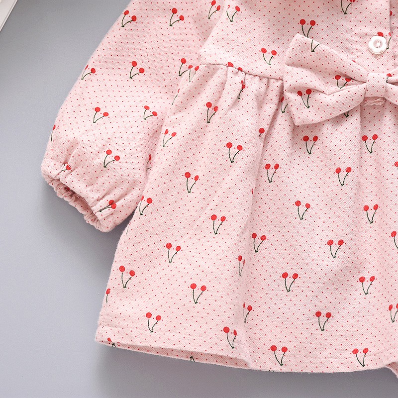 ชุดเดรส พิมพ์ลายการ์ตูนเชอร์รี่ แต่งโบว์ สําหรับเด็กผู้หญิง