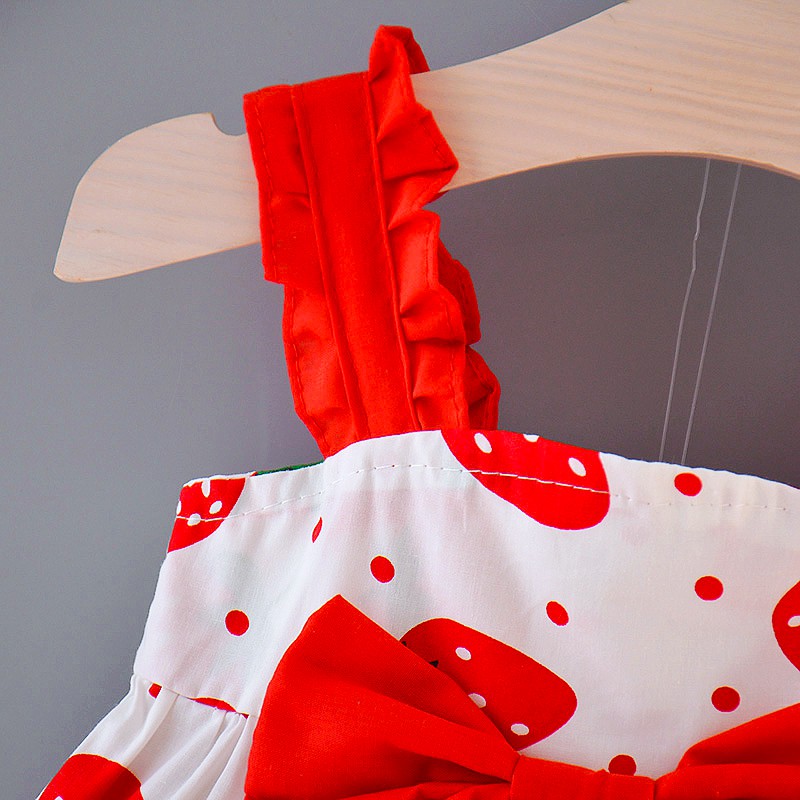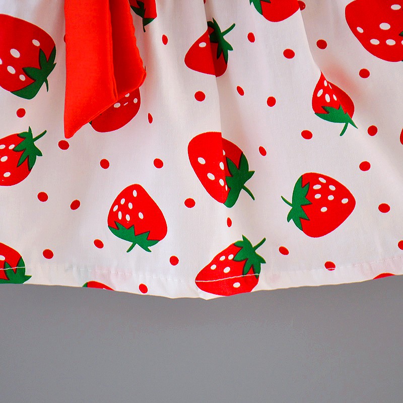 ชุดเดรส พิมพ์ลายจุด สตรอเบอร์รี่ แต่งโบน่ารัก แฟชั่นฤดูร้อน สําหรับเด็กผู้หญิง 9 เดือน - 3 ปี