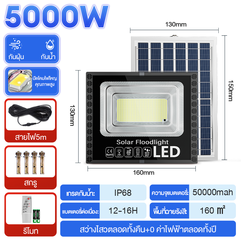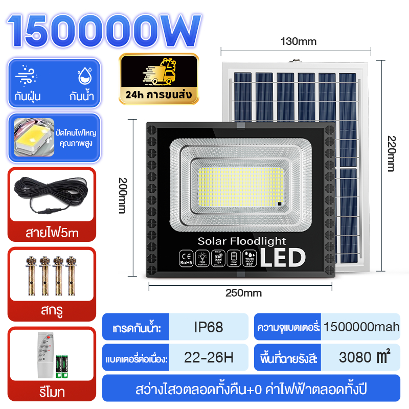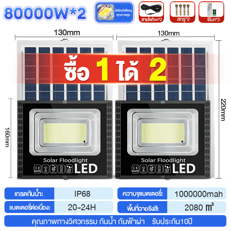 ไฟโซล่าเซลล์ 400000W Solar Light ซื้อ1แถม1 LED กันน้ำกลางแจ้ง IP68 ใช้แคมป์ปิ้ง สว่างอัตโนมัติเมื่อฟ้ามืด จับเวลาระยะไกล