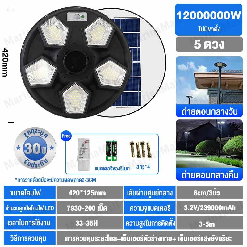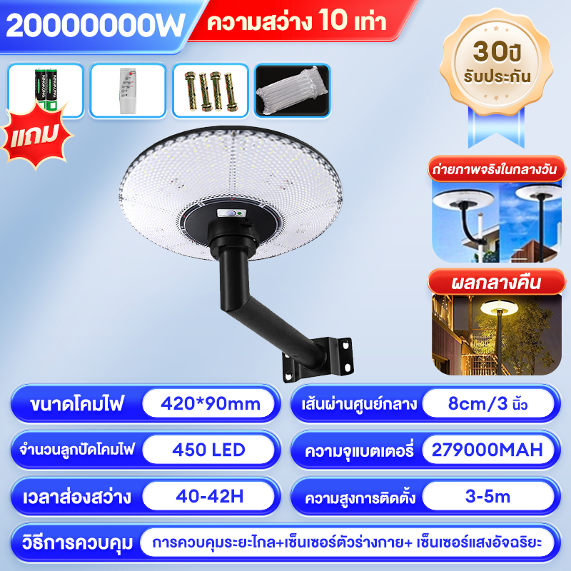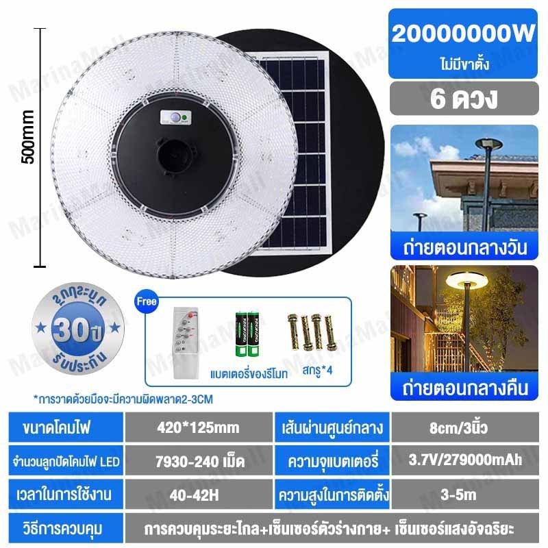 ไฟโซล่าเซลล์ UFO ไฟถนนยูเอฟโอ Solar Light ทรงกลม 30000000W LED พลังงานแสงอาทิตย์ IP69 ป้องกันฟ้าผ่า