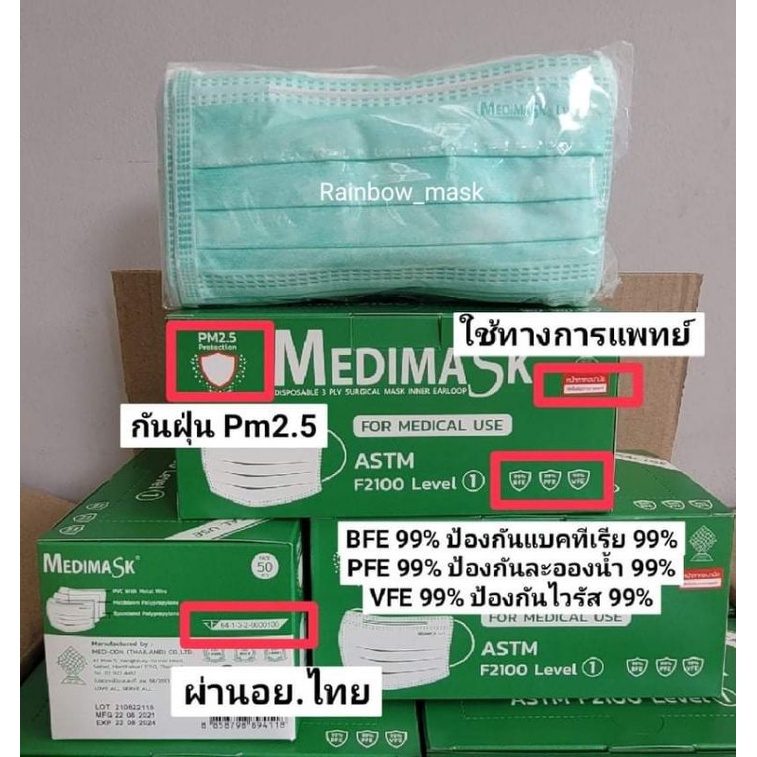🔥ลด50%ในไลฟ์🔥🚩Medical Medimask Lv1เมดิแมส หน้ากากอนามัยทางการแพทย์ บรรจุ 50ชิ้น/กล่อง