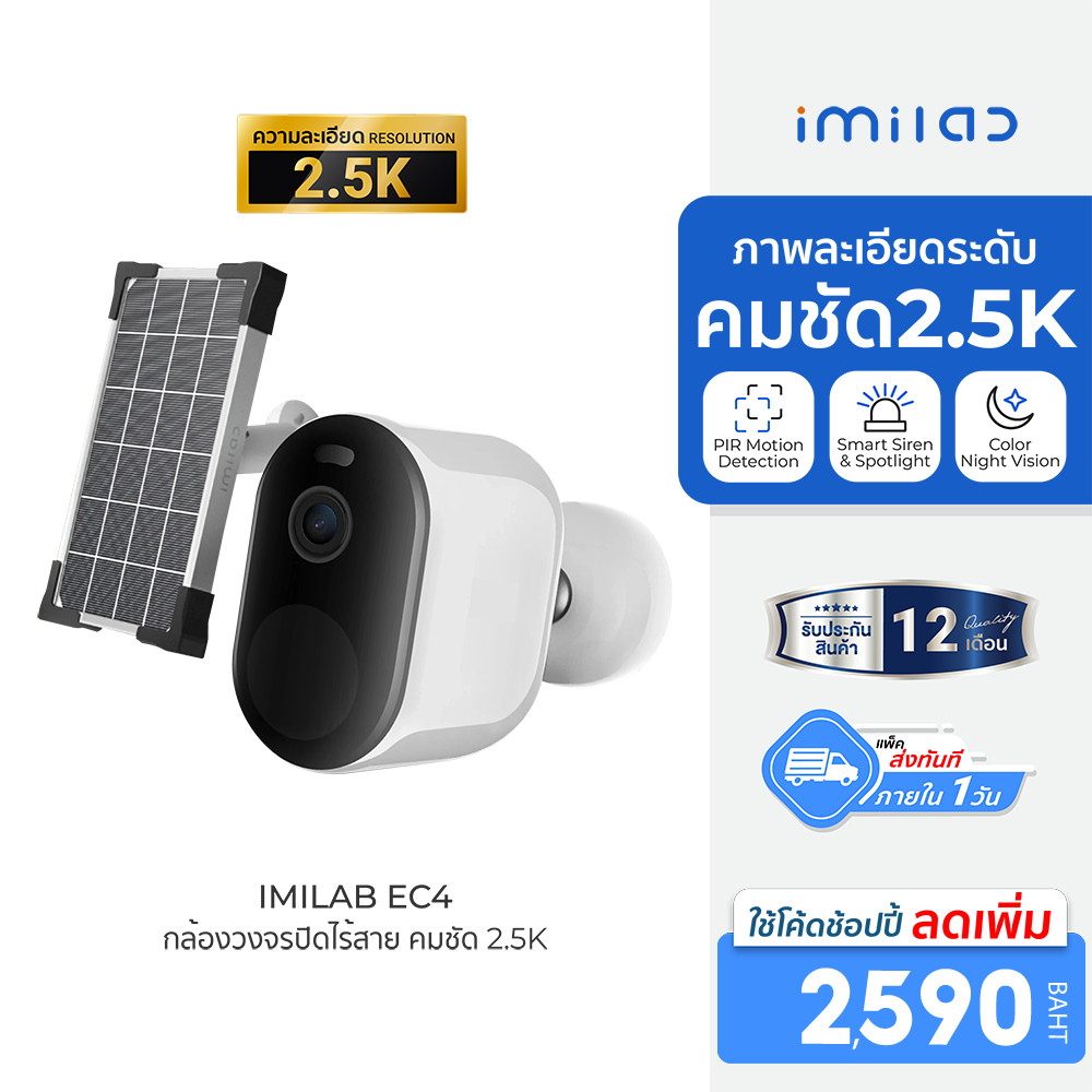 [ลดเหลือ 2590] IMILAB EC4 (GB V.) กล้องวงจรปิดไร้สาย คมชัด 2.5K แสดงภาพสีกลางคืน 4MP ศูนย์ไทย -1Y