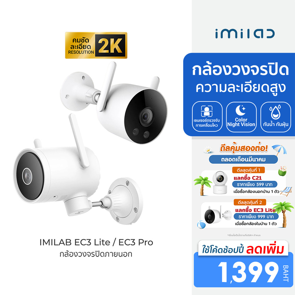 [ลดเหลือ 1399] IMILAB EC3 Lite / EC3 Pro กล้องวงจรปิดนอกบ้าน Ai ไล่โจร คมชัด 2K ฉลาดมากขึ้น เชื่อมต่อแอปฯ -24M