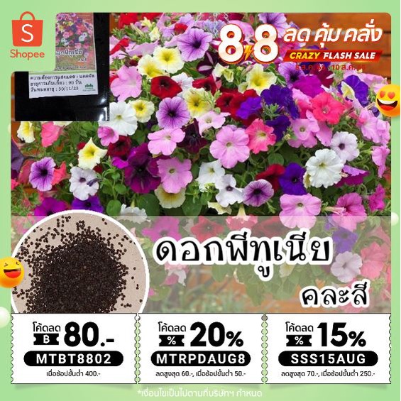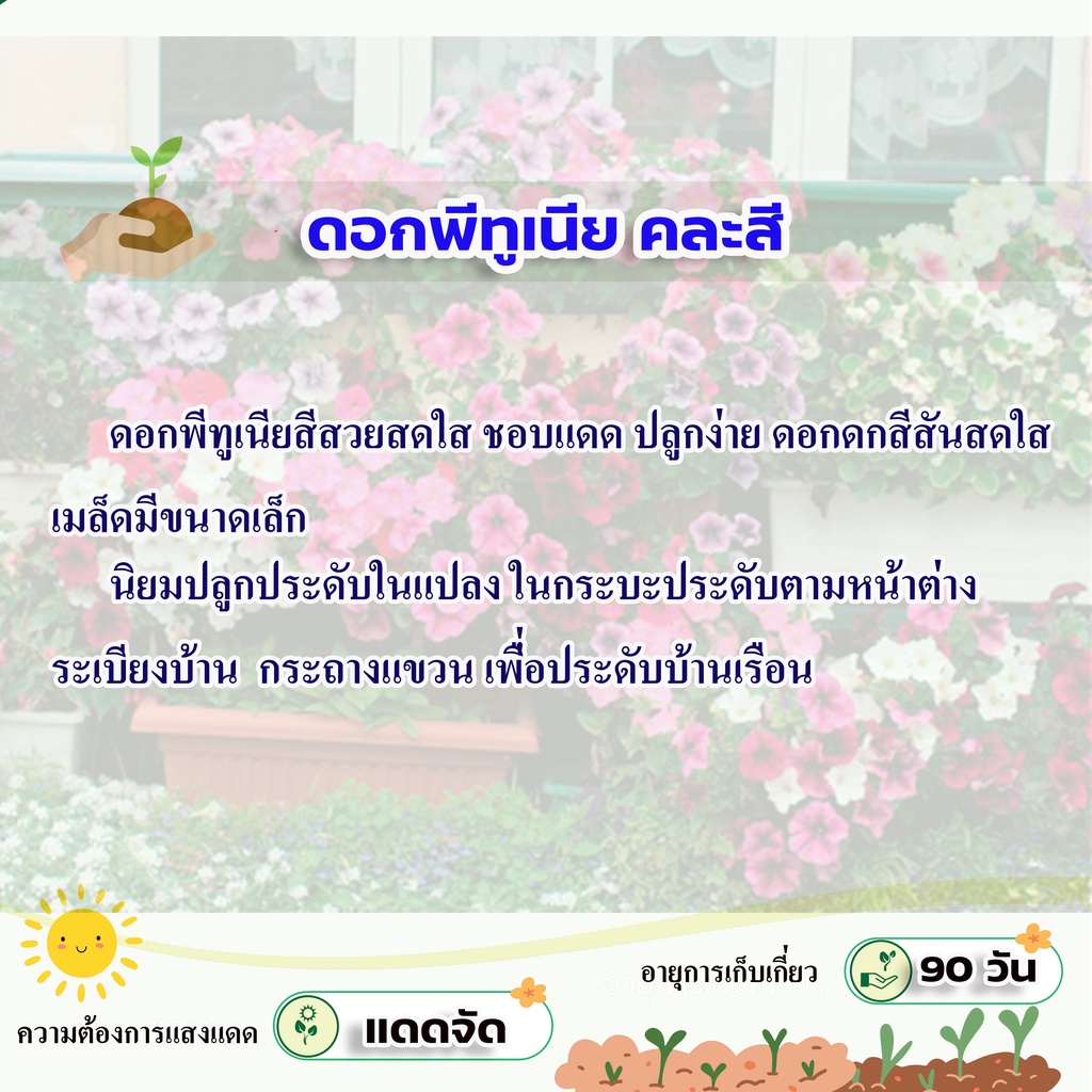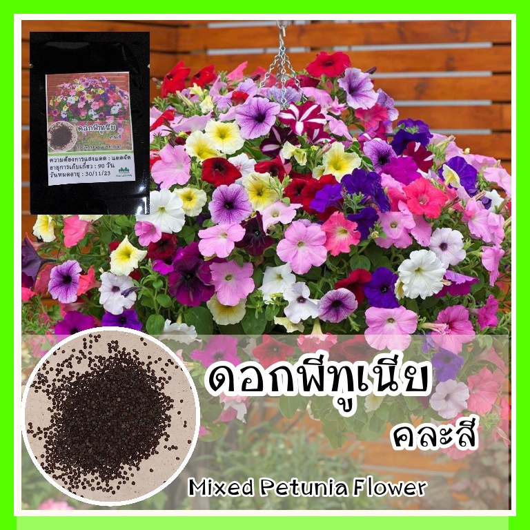 รหัส 017 เมล็ดพันธุ์แท้ OP ดอกพีทูเนีย คละสี - Mixed Petunia Flower พิทูเนีย สีสวยสดใส ชอบแดด ปลูกง่าย