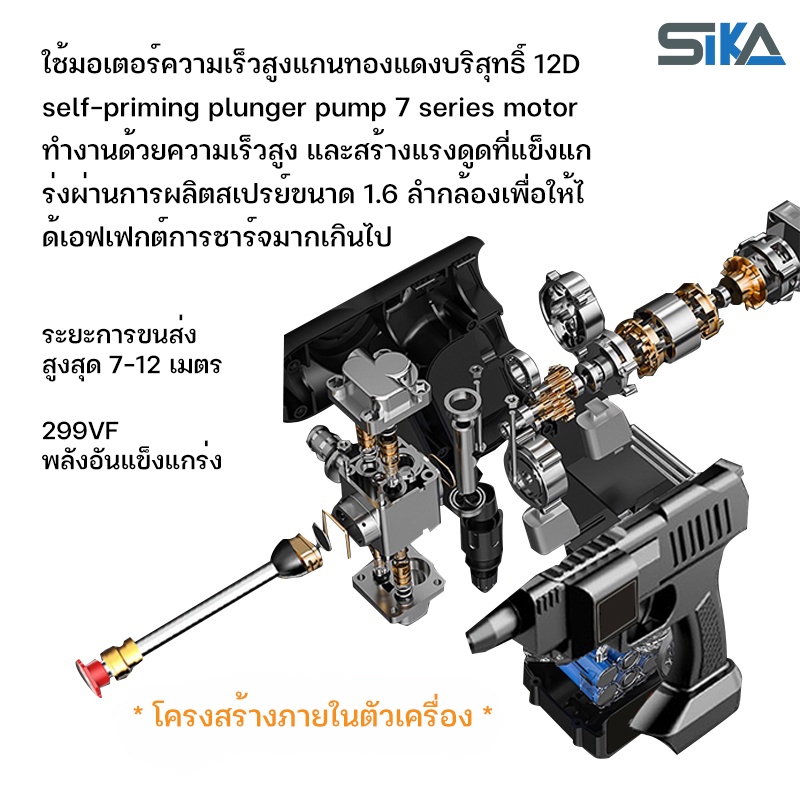 Sika ปืนฉีดน้ำแรงดันสูงไร้สาย เครื่องฉีดน้ำแรงดันสูง เครื่องฉีดน้ำแรงดันสูงไร้สาย 299V